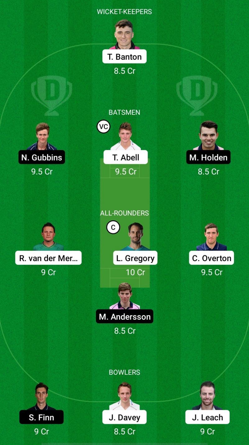 Fantasy Suggestion#1: Tom Banton, Tom Abell, Max Holden, Nick Gubbins, Craig Overton, Lewis Gregory, Roelof van der Merwe, Martin Andersson, Jack Leach, Josh Davey, Steven Finn.
