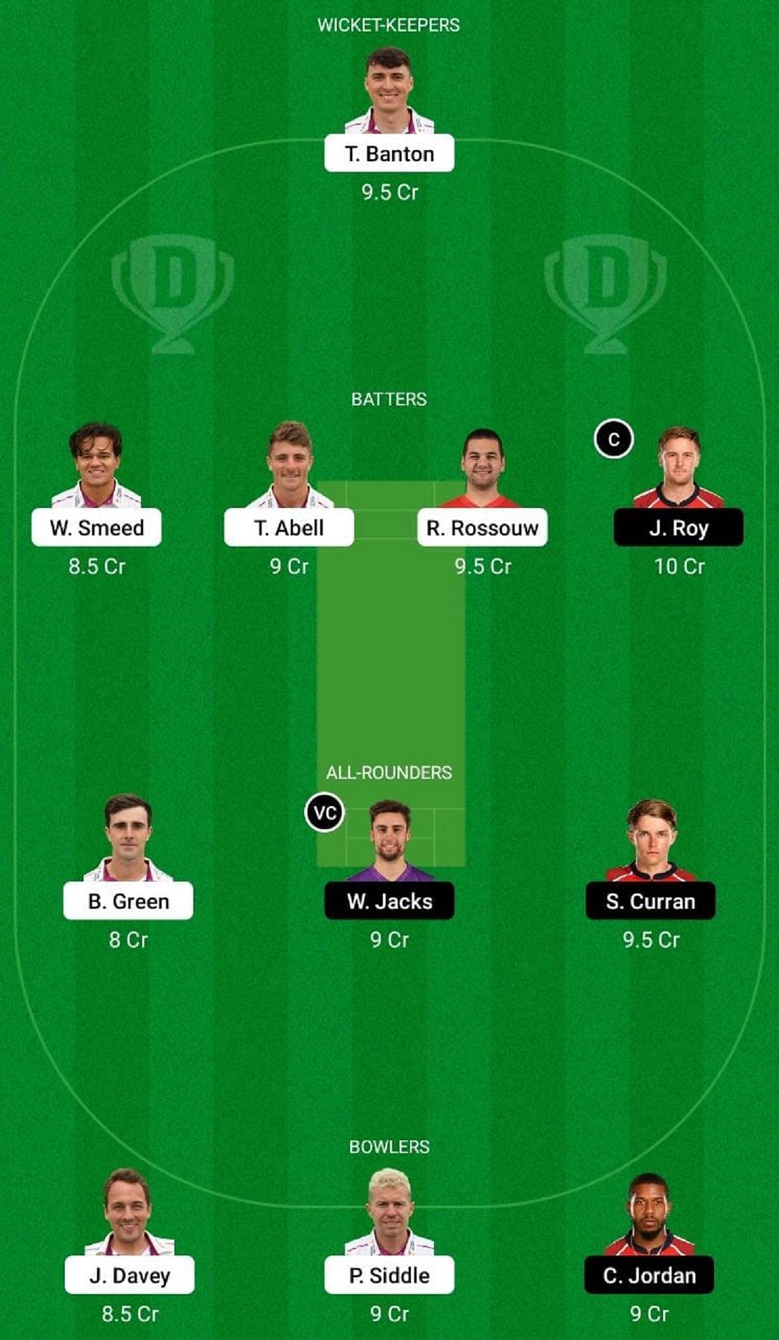 Fantasy Suggestion #2: Tom Banton, Rilee Rossouw, Will Smeed, Jason Roy, Tom Abell, Will Jacks, Sam Curran, Ben Green, Chris Jordan, Josh Davey, Peter Siddle