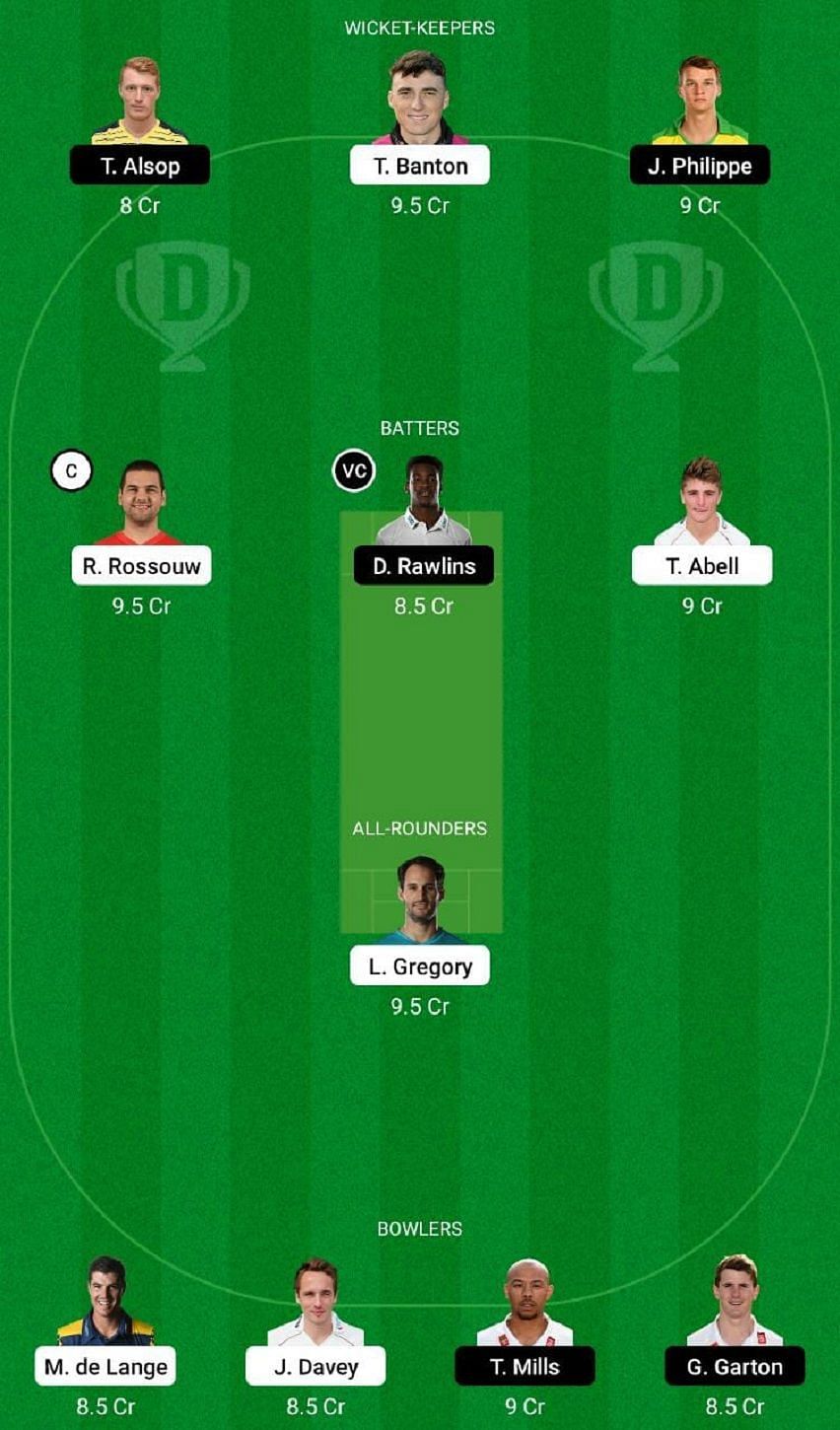Fantasy Suggestion #2: Tom Alsop, Tom Banton, Josh Philippe, Rilee Rossouw, Delray Rawlins, Tom Abell, Tymal Mills, Lewis Gregory, Marchant de Lange, George Garton and Josh Davey.