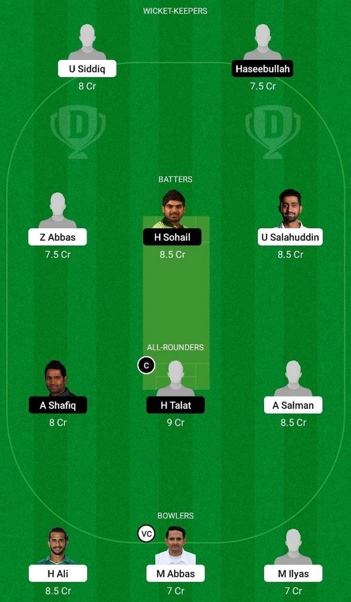 Bowlers: M Ilyas, M Abbas (vc), H Ali