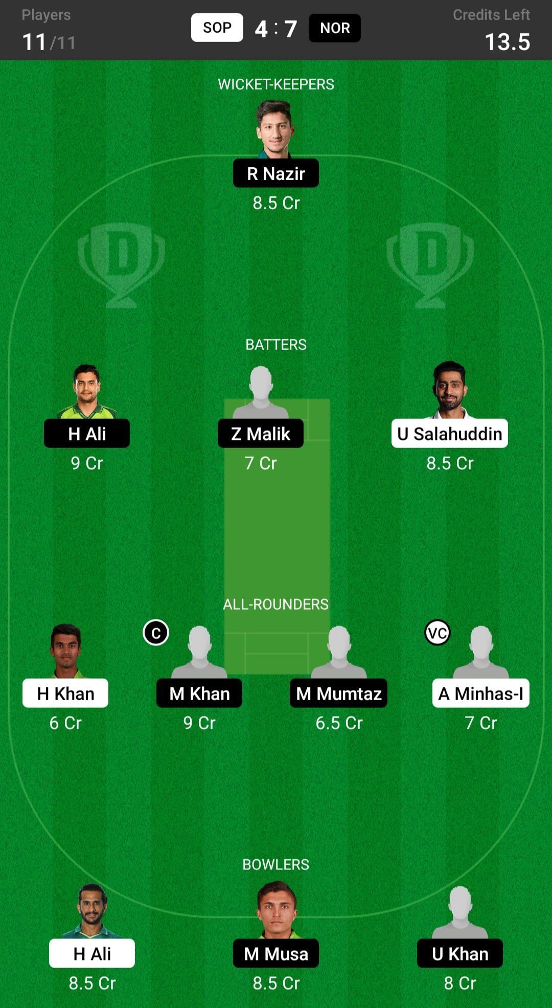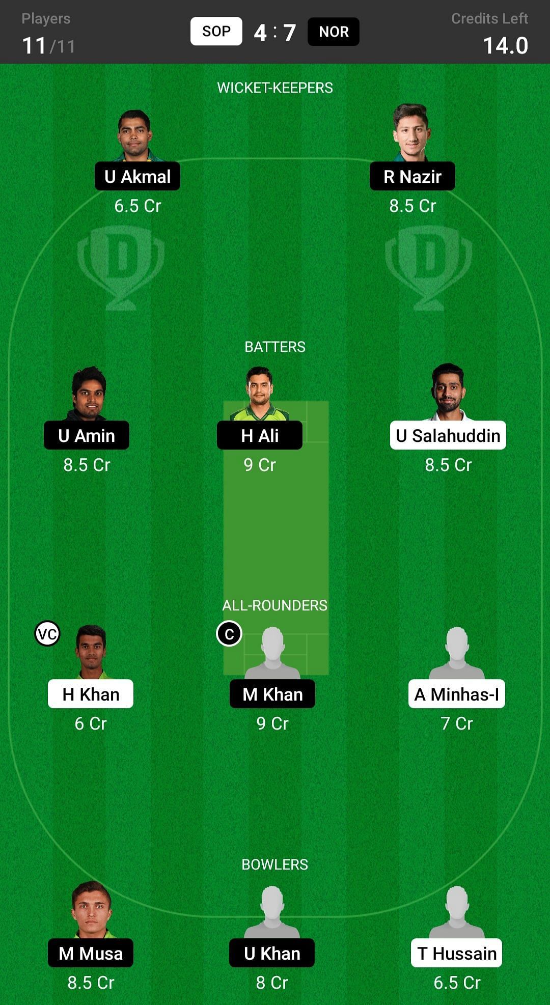 H Ali and U Amin are the two best batter picks. U Salahuddin has played well in the last few games, so he's also a good pick.