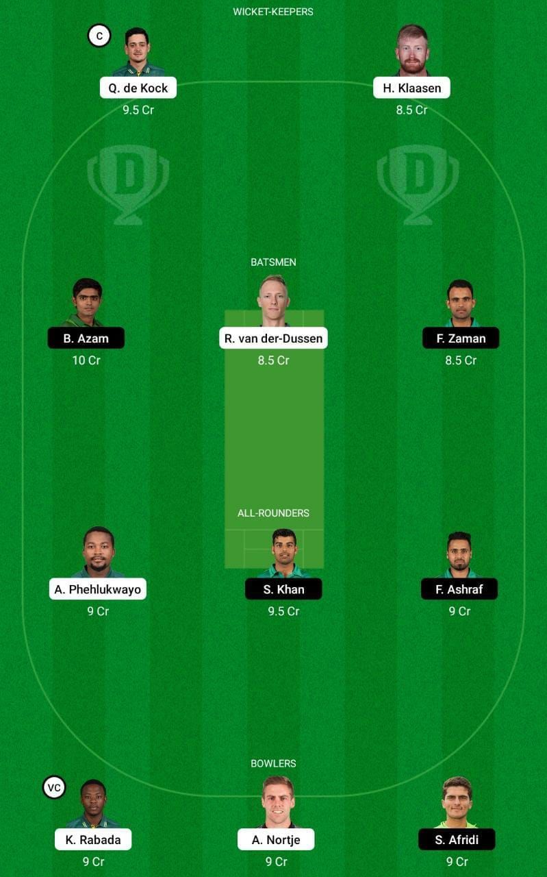 Fantasy Suggestion #1: Quinton de Kock, Heinrich Klaasen, Babar Azam, Rassie van der Dussen, Fakhar Zaman, Andile Phehlukwayo, Shadab Khan, Faheem Ashraf, Kagiso Rabada, Anrich Nortje and Shaheen Afridi