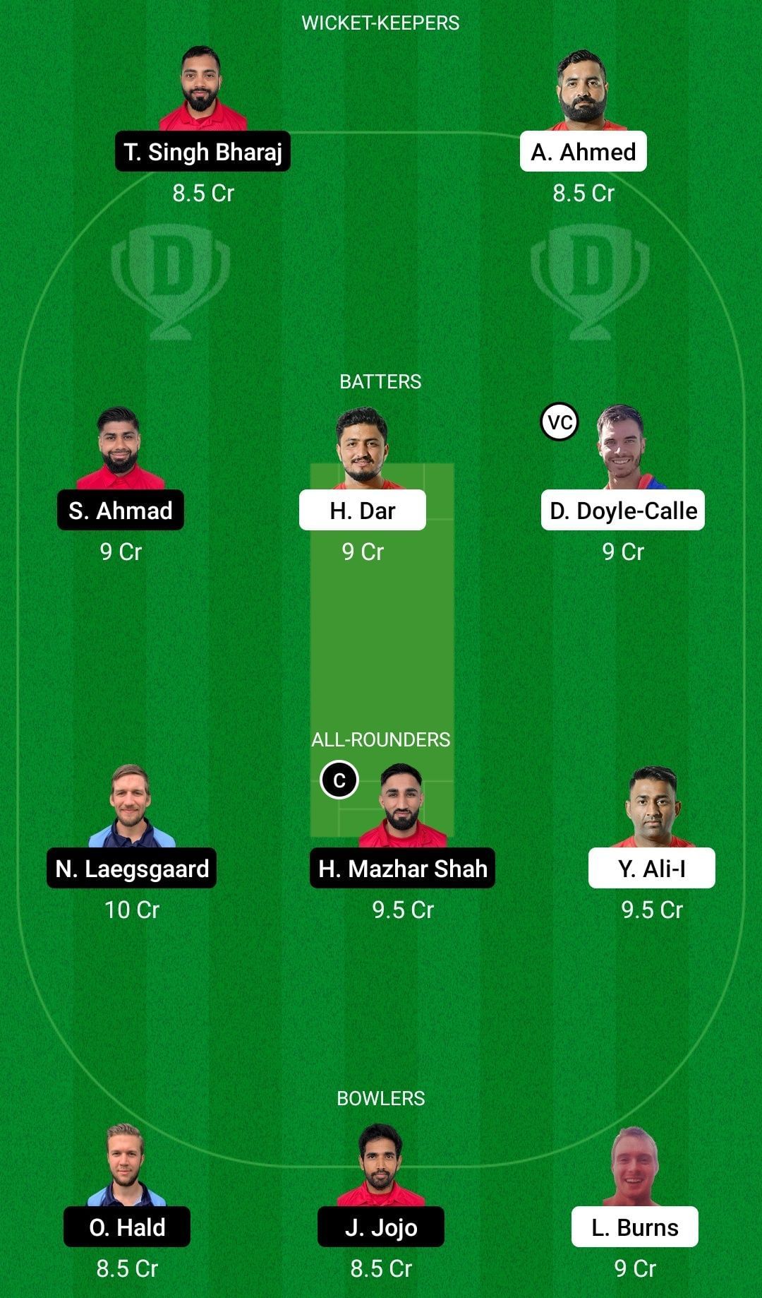 Fantasy Suggestion #1: Awais Ahmed, Saif Ahmad, Hamza Saleem Dar, Daniel Doyle Calle, Nicolaj Laegsgaard, Hamid Shah, Yasir Ali, Oliver Hald, Jino Jojo, Muhammad Kamran, Lorne Burns.