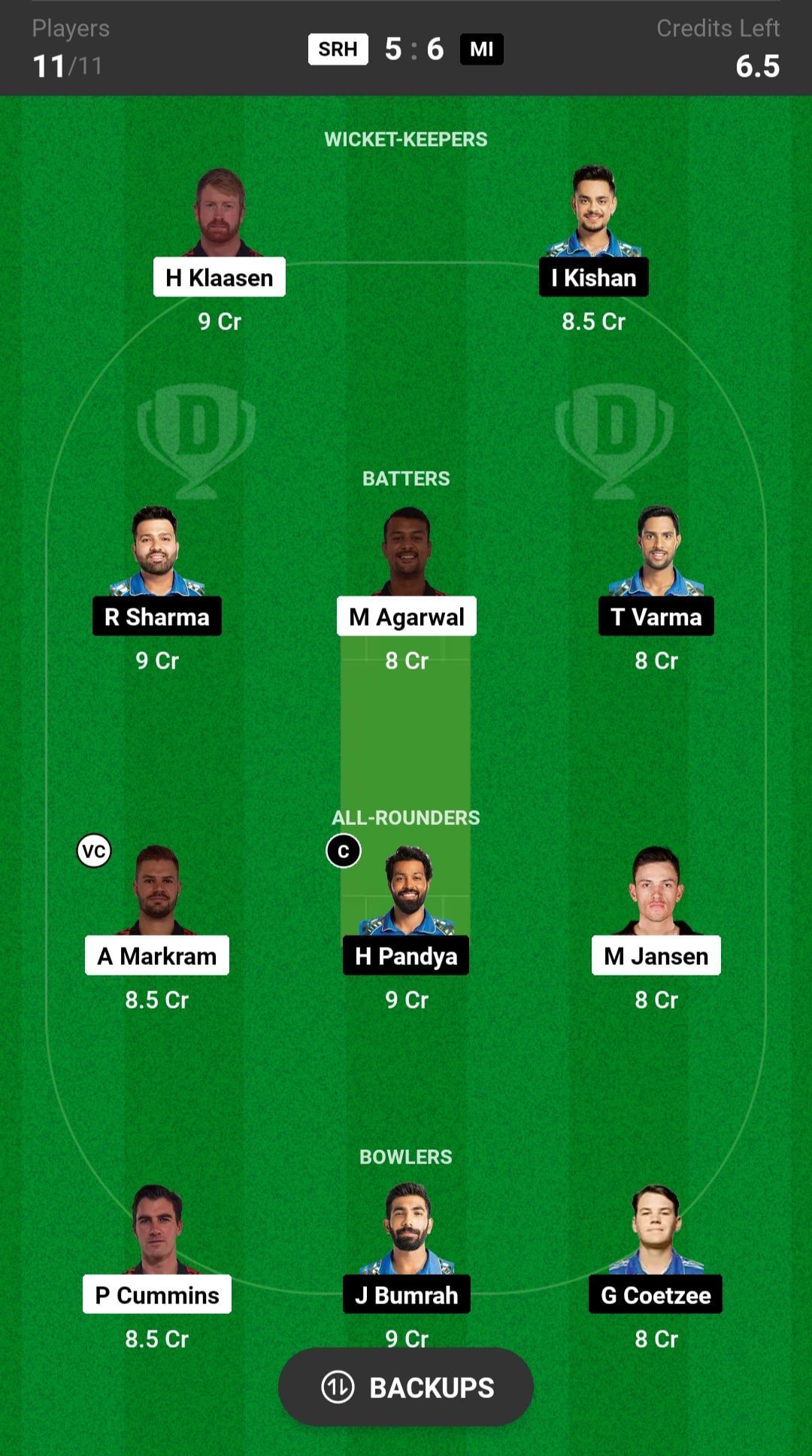 Sunrisers Hyderabad vs Mumbai Indians Dream11 Prediction Today, Grand League