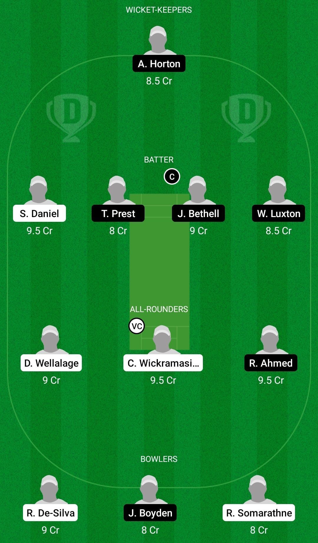 Fantasy Suggestion #1: Alex Horton, Shevon Daniel, Tom Prest, Jacob Bethell, William Luxton, Dunith Wellalage, Chamindu Wickramasinghe, Rehan Ahmed, Raveen de Silva, Joshua Boyden, Ranuda Somarathne