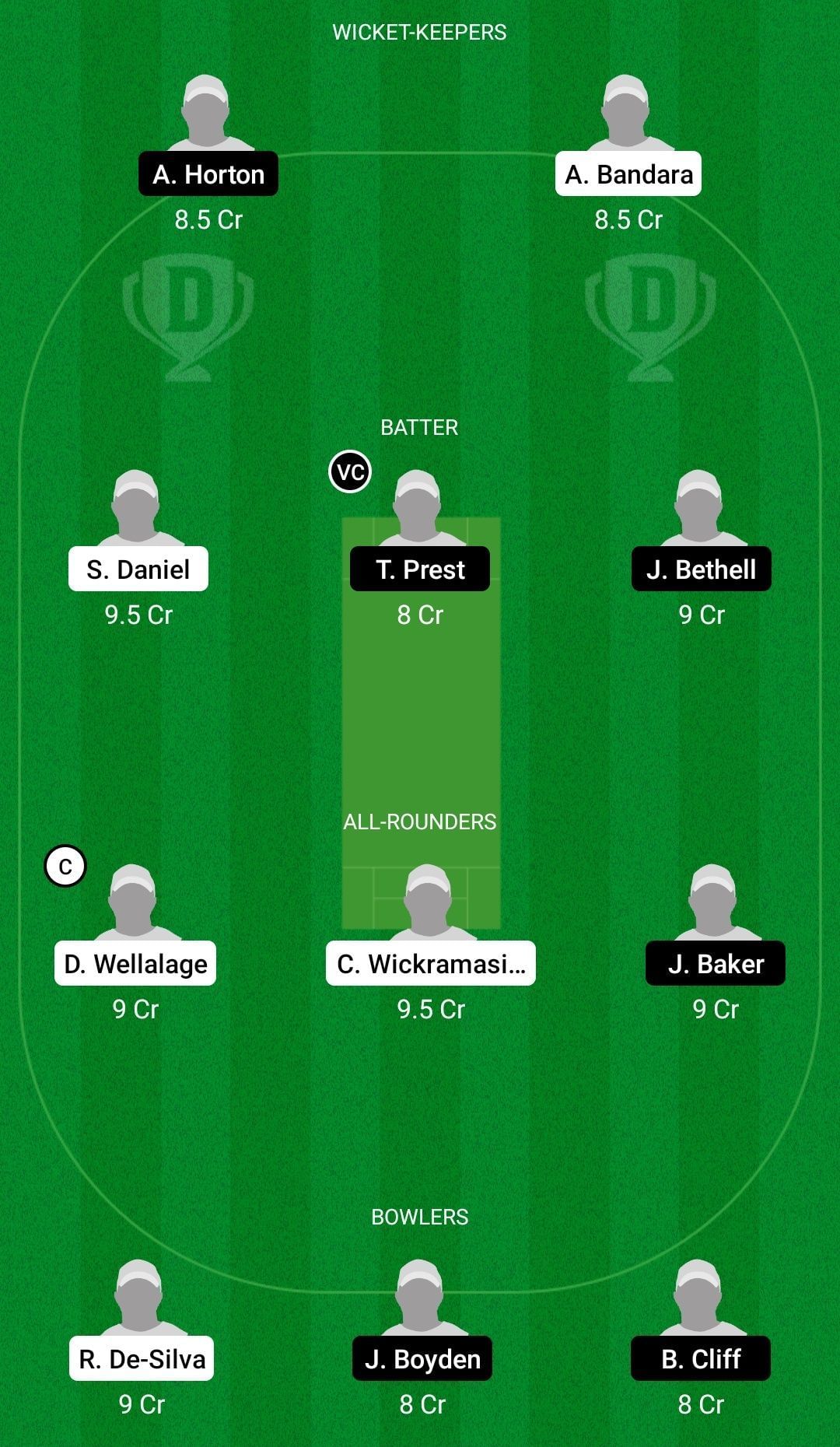 Fantasy Suggestion #2: Anjala Bandara, Alex Horton, Shevon Daniel, Tom Prest, Jacob Bethell, Dunith Wellalage, Chamindu Wickramasinghe, Josh Baker, Raveen de Silva, Joshua Boyden, Benjamin Cliff