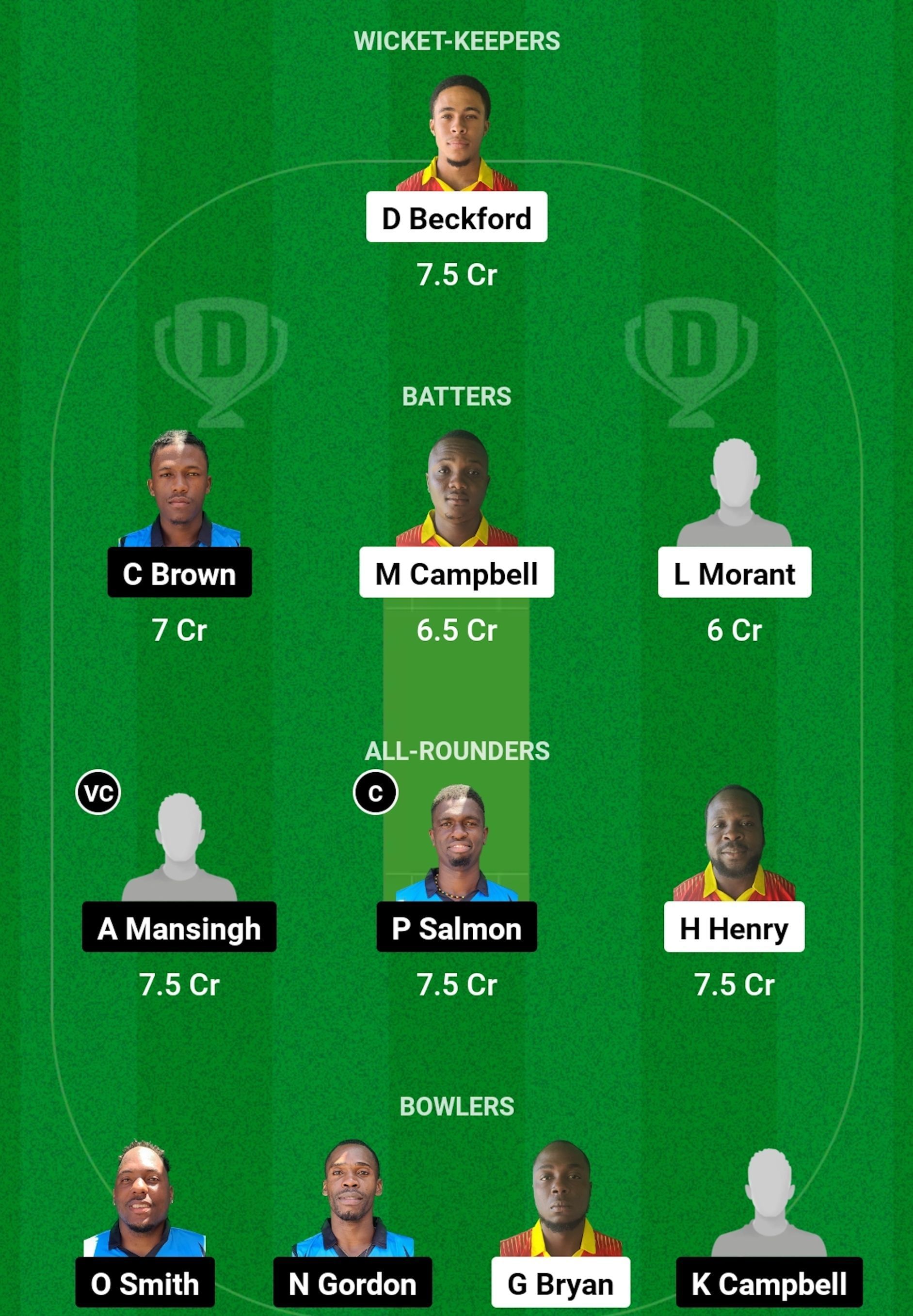 D Beckford has been in good form with the bat in the tournament. He is also a good wicketkeeper and will be a pretty good choice for the match.