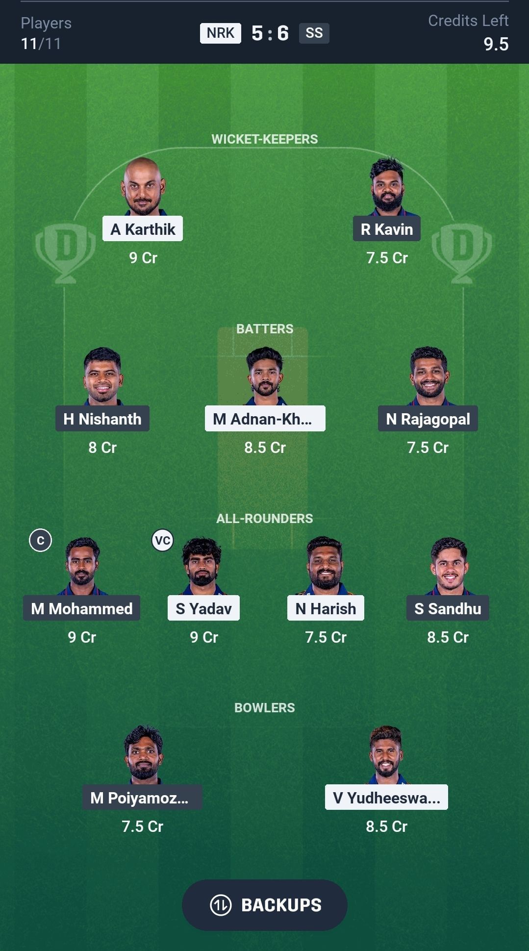 S Yadav is one of the most crucial picks from the Nellai Royal Kings squad. He is in top notch form and can once again perform well at this venue. He has smashed 25 runs and taken 5 wickets in the last two matches.