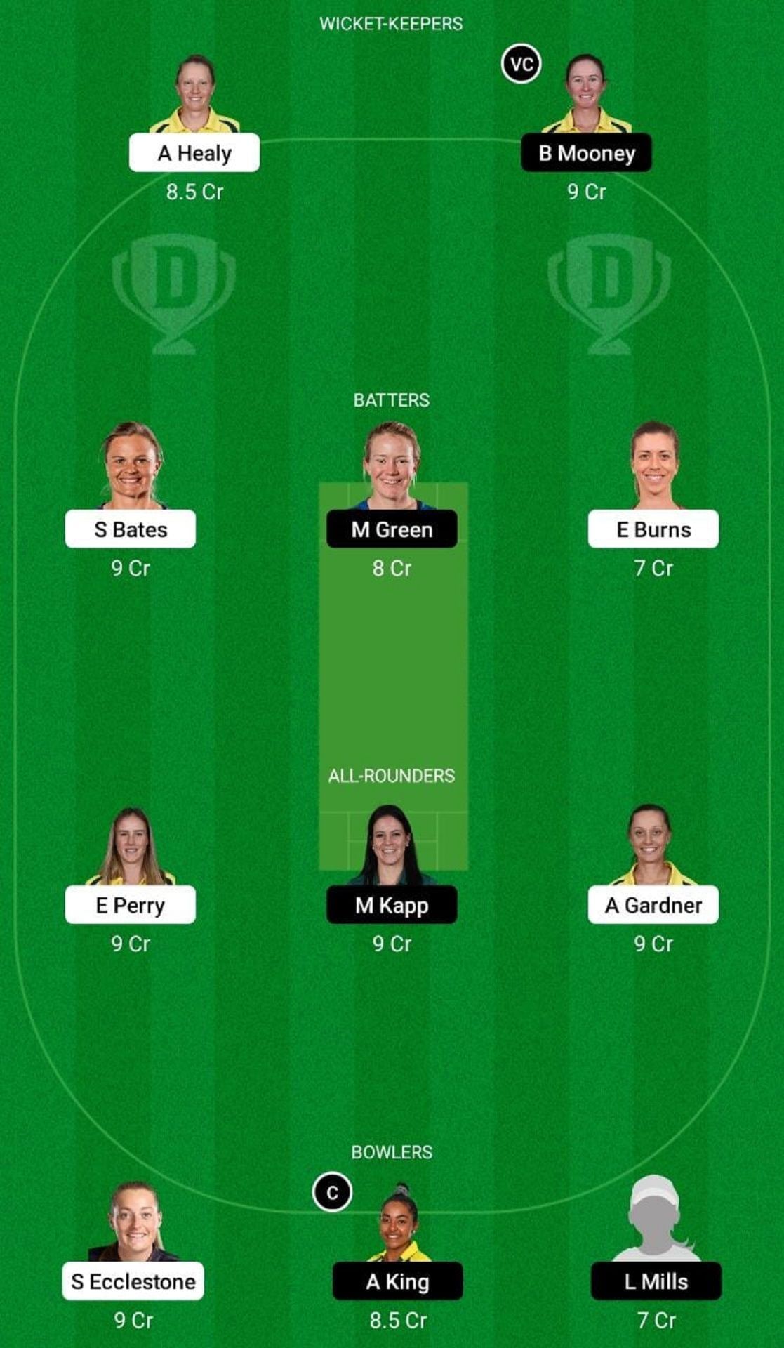 Suzie Bates, Alyssa Healy (WK), Ellyse Perry (C), Ash Gardner, Erin Burns, Nicole Bolton, Sophie Ecclestone, Lauren Cheatle, Angelina Genford, Kate Peterson, Stella Campbell.