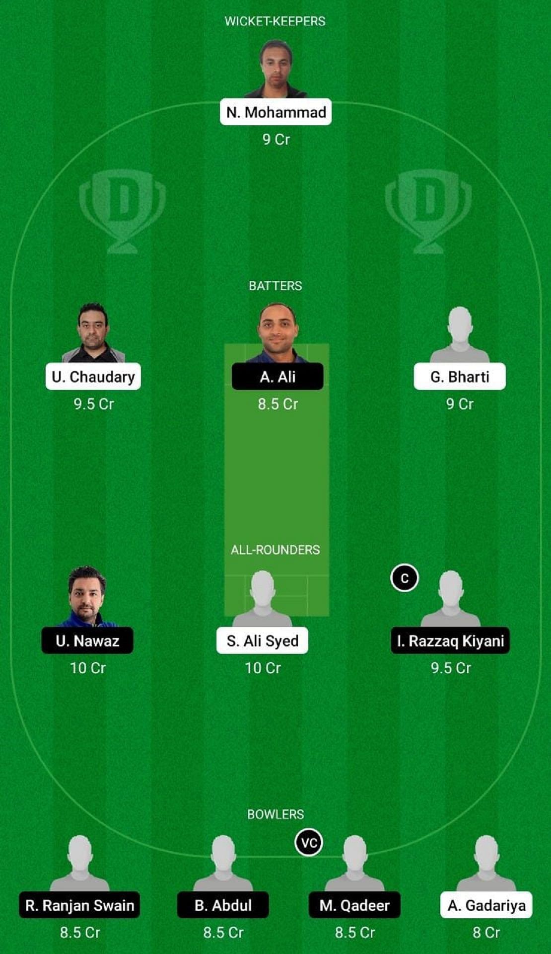 Fantasy Suggestion #2: N Mohammad, A Ali, U Chaudary, G Bharti, S Ali Syed, U Nawaz, I Razzaq Kiyani, M Qadeer, R Ranjan Swain, B Abdul, A Gadariya, M Hakim