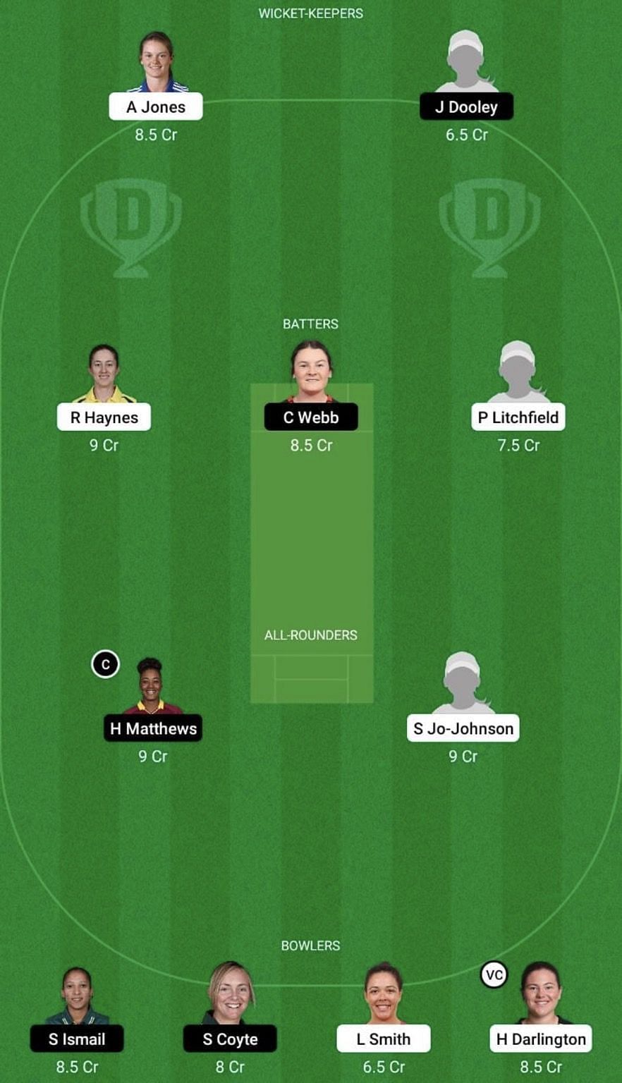 Amy Jones, Phoebe Litchfield, Sammy Jo-Johnson, Rachael Haynes (c), Chloe Tryon, Tahlia Wilson (wk), Hannah Darlington, Sam Bates, Lauren Smith, Lea Tahuhu and Belinda Vakarewa.