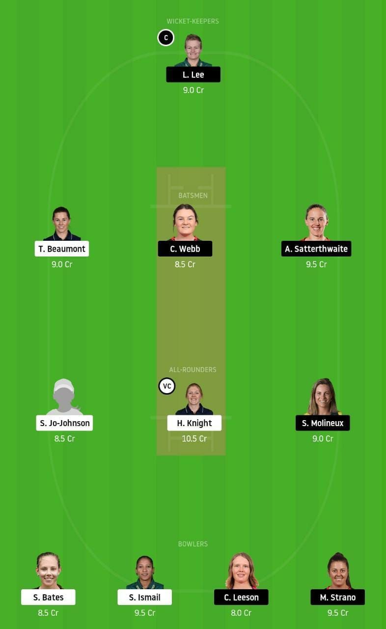 Fantasy Suggestion #2: L Lee, R Haynes, C Webb, A Satterthwaite, R Trenaman, H Knight, S Molineux, S Bates, S Ismail, C Leeson and M Strano