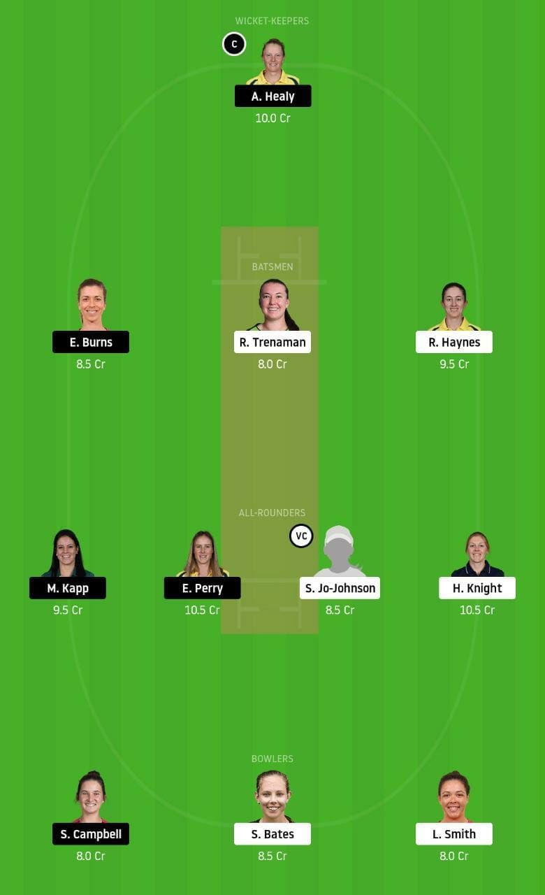 Fantasy Suggestion #2: A Healy, R Haynes, E Burns, P Litchfield, H Knight, E Perry, M Kapp, S Jo-Johnson, H Darlington, L Smith and S Campbell.