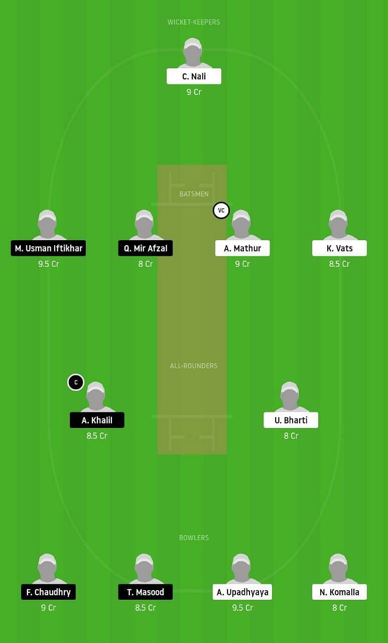 Fantasy Suggestion #1: C Nali, A Mathur, Q Mir, M Usman, K Vats, U Bharti, A Khalil, N Komalla, F Chaudhry, A Upadhyaya and T Masood