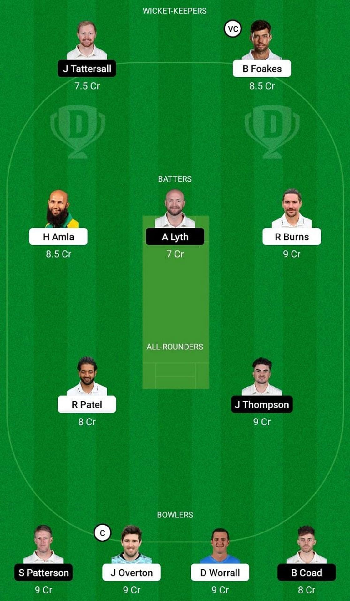Batters: Rory Burns, Hashim Amla, Adam Lyth