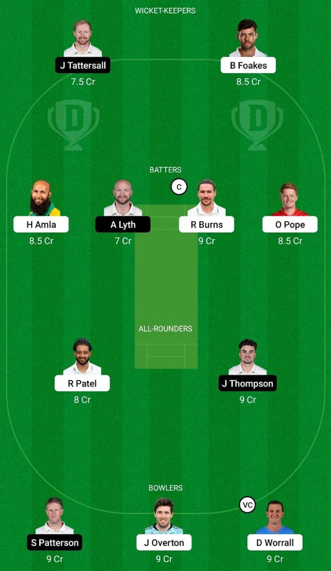 Batters: Rory Burns, Hashim Amla, Adam Lyth, Ollie Pope