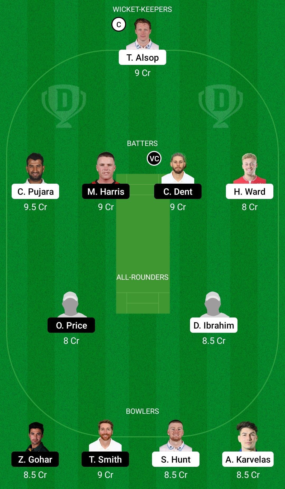Fantasy Suggestion #2: Tom Alsop, Cheteshwar Pujara, Marcus Harris, Chris Dent, Harrison Ward, Oliver Price, Danial Ibrahim, Zafar Gohar, Tom Smith, Sean Hunt, Aristides Karvelas.