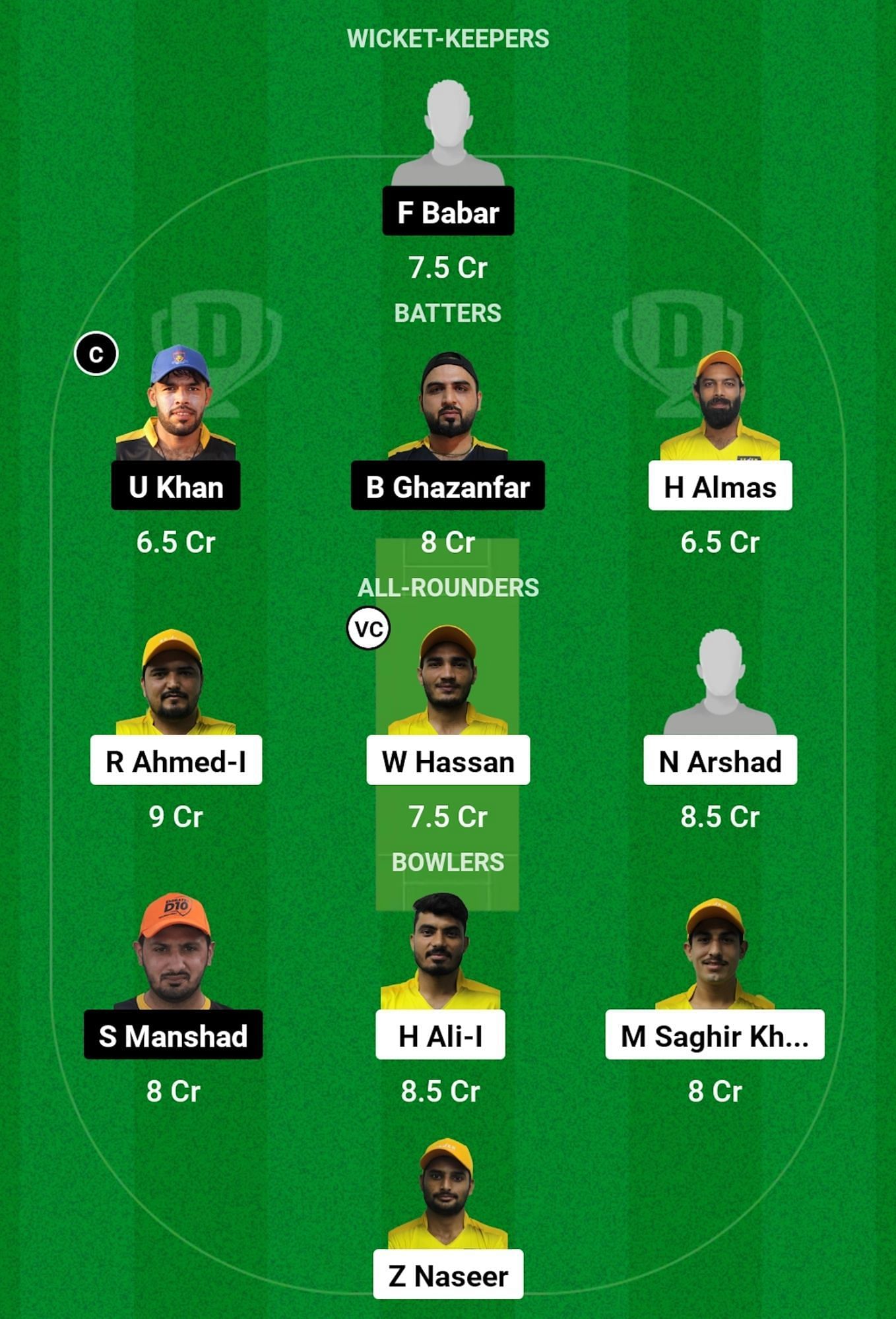S Ul Haq Bhatti, S Sandy, F Babar, U Khan, S Khalid Butt, U Doger, S Babar, S Manshad, M Yasir Maharvi, M Ali Maharvi, and S Malook.