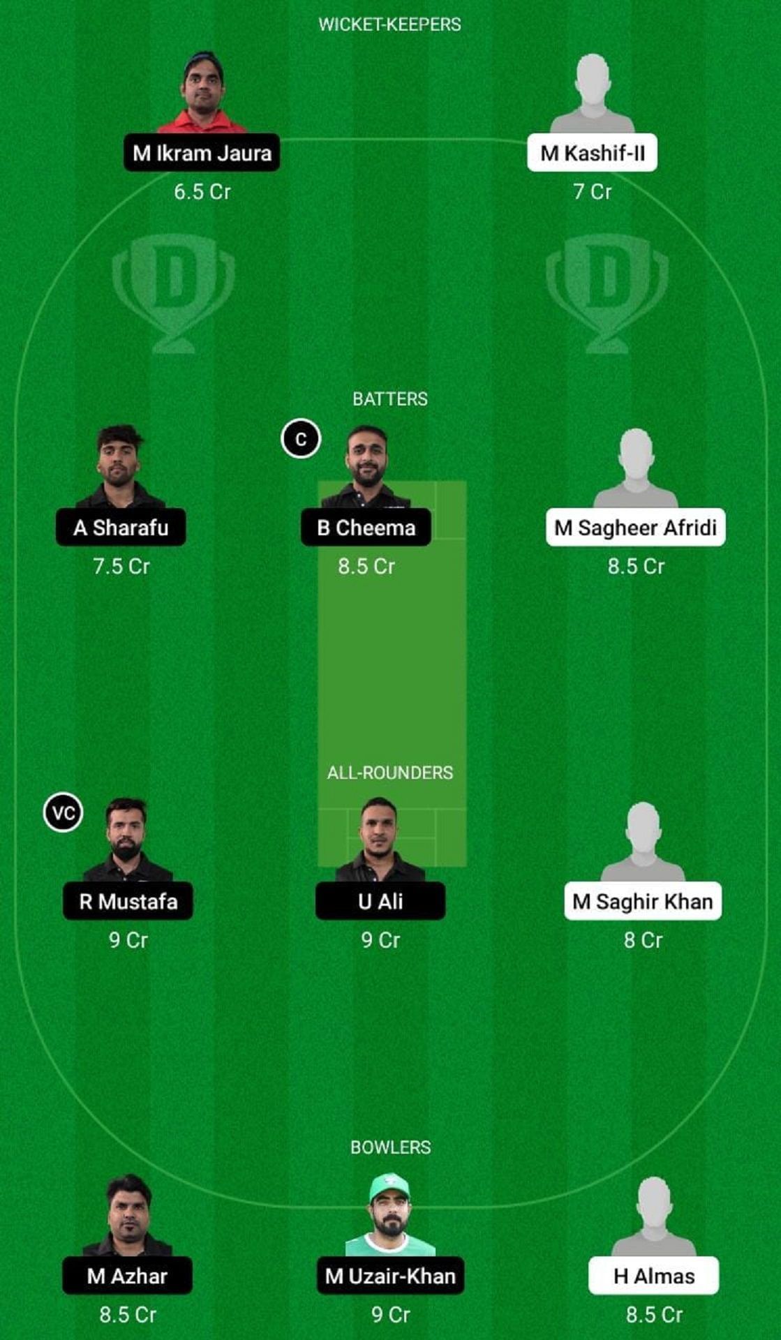 Batters: A Sharafu, B Cheema, F Mohammad, M Sagheer Afridi