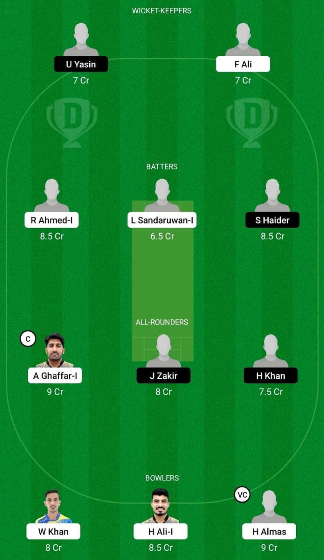 Bowlers: H Almas, H Ali (c), F Ahmed