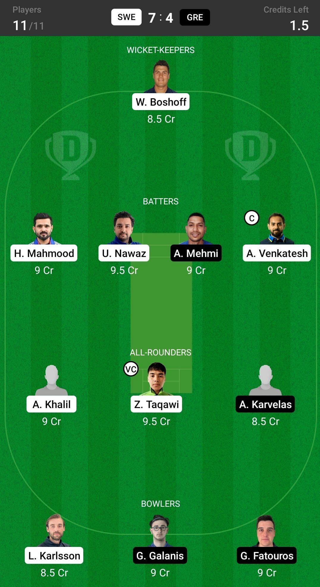 Fantasy suggestion #2: W Boshoff, H Mahmood, U Nawaz, A Venkatesh, A Khalil, Z Taqawi, A Mohammad, A Karvelas, L Karlsson, G Galanis, G Fatouros