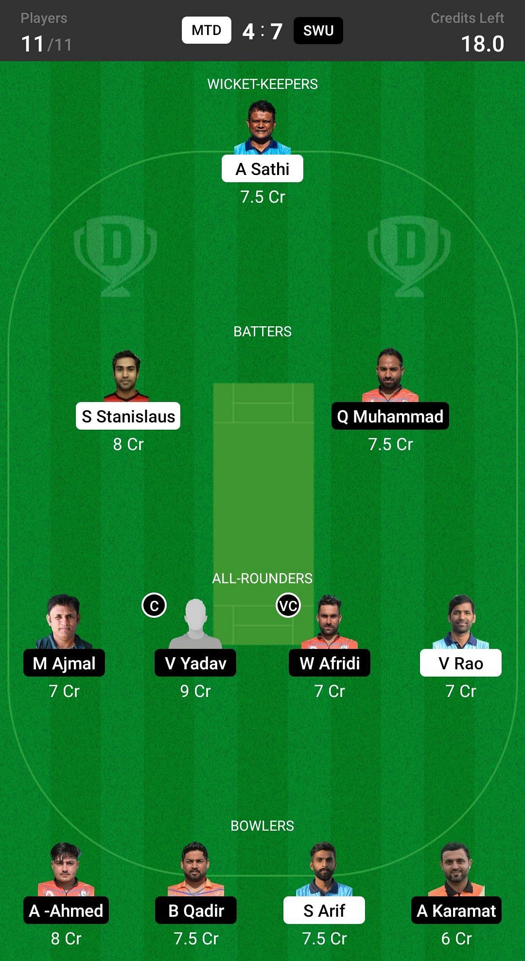 Q Muhammad and S Stanislaus are the two best batter picks for the Dream11 team. I Ameer played exceptionally well in the last series, so he is also a good pick for today's Dream11 fantasy team.