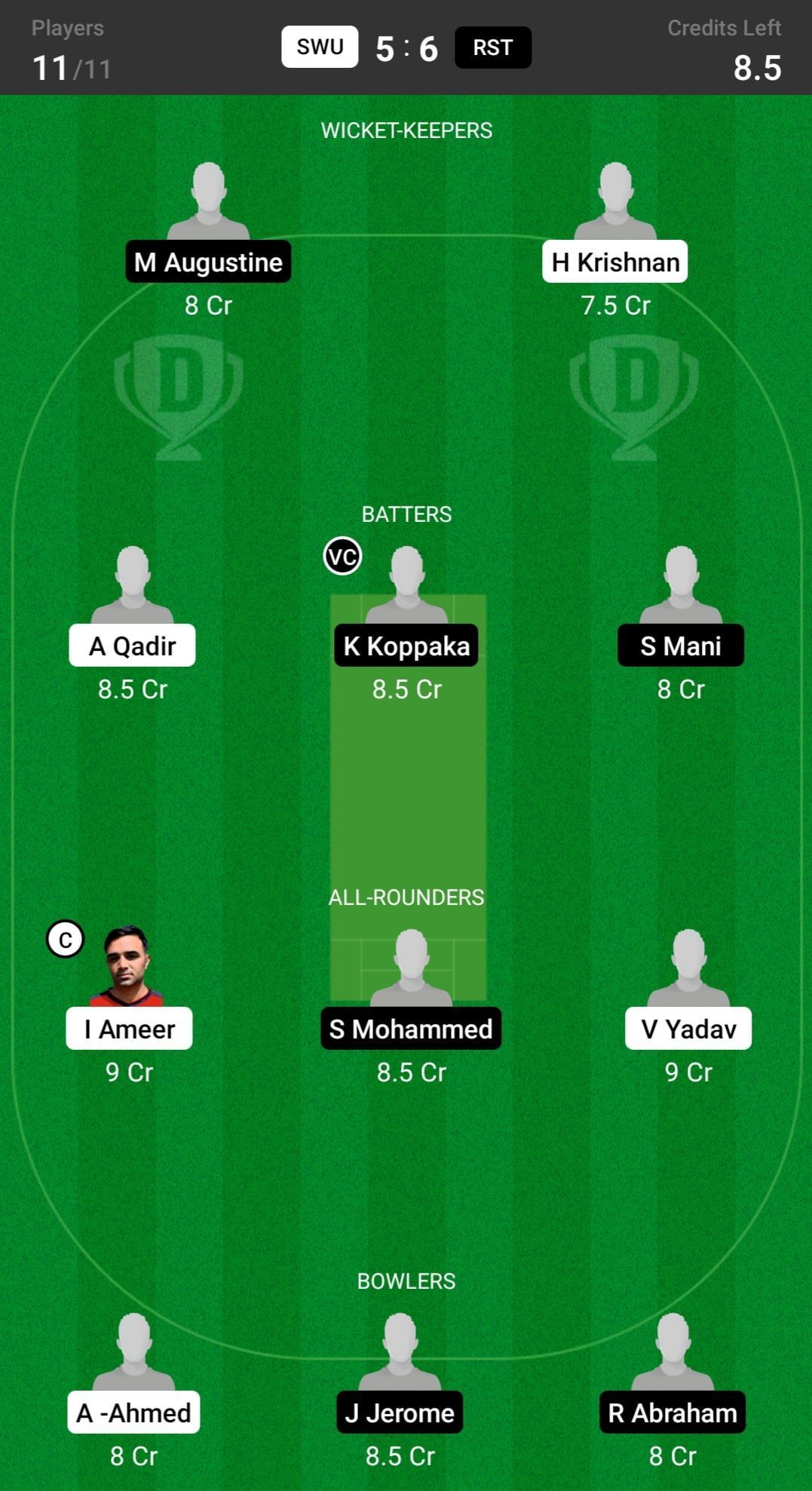 As the pitch is well-balanced, you can make Koppaka the captain or vice-captain, as he bats in the middle order and also completes his quota of overs. You could make him the captain of the grand league teams.