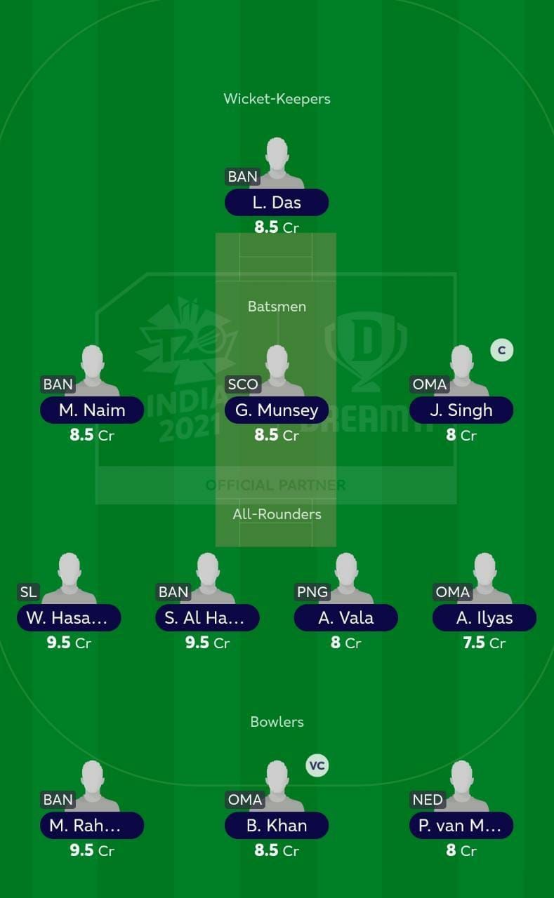 Best T20 World Cup 2021 Fantasy Team for Matches 1 & 2, OMN vs PNG | BAN vs SCO