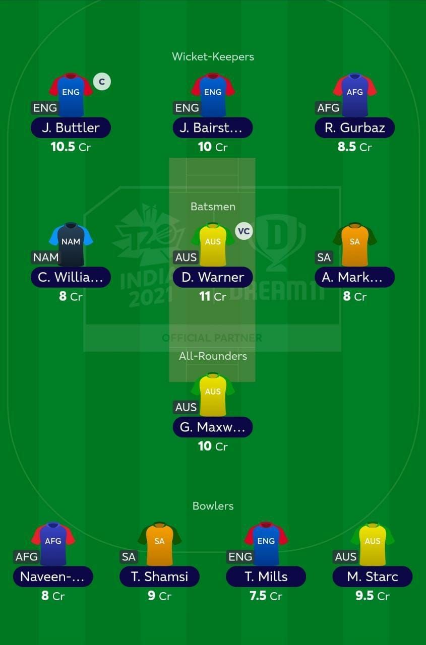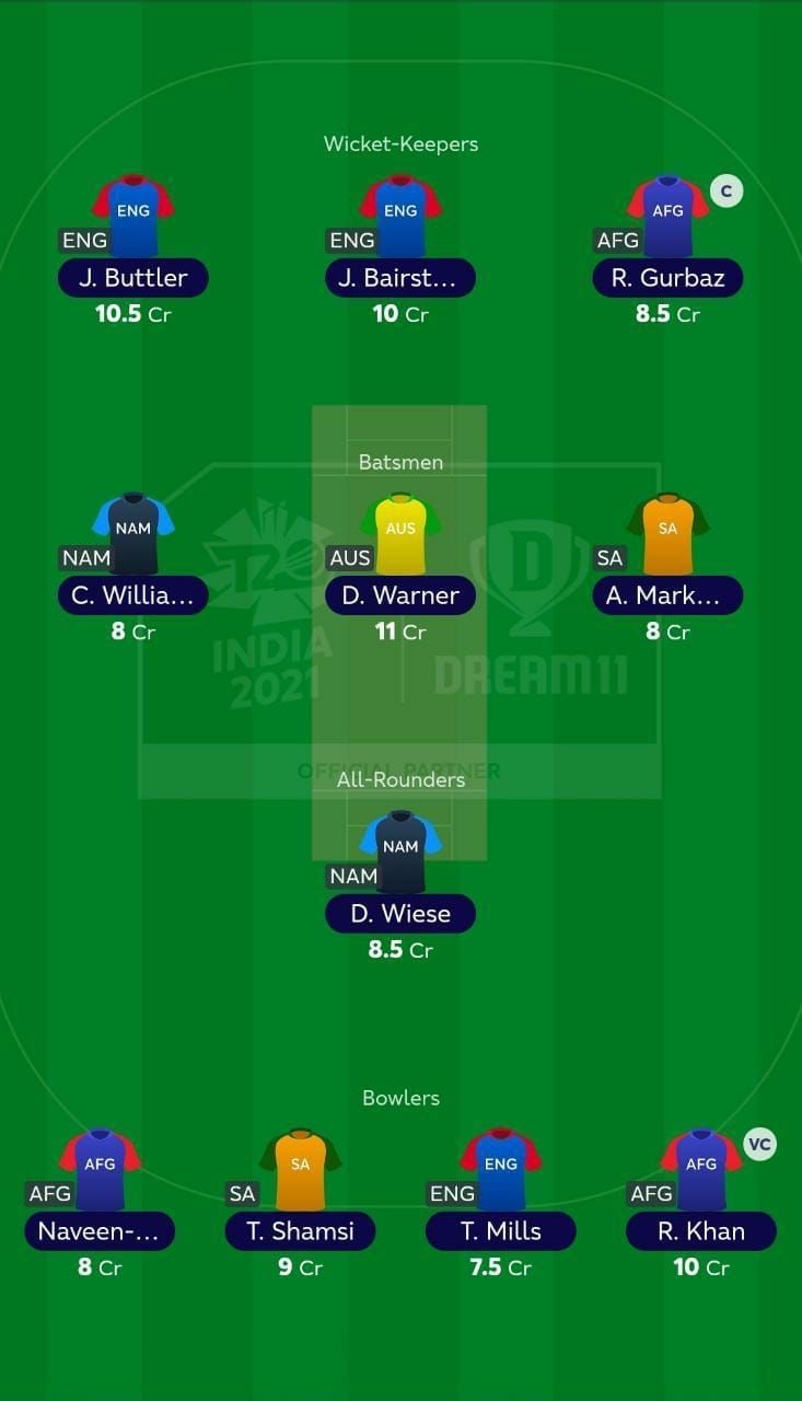 For the first game between Afghanistan and Namibia, Rahmanullah Gurbaz and Rashid Khan are the preferred options for captaincy. Gurbaz is one of the more exciting players to watch given his range of shots. Given his ability to take on the pacers, he is one to watch out for in this game.