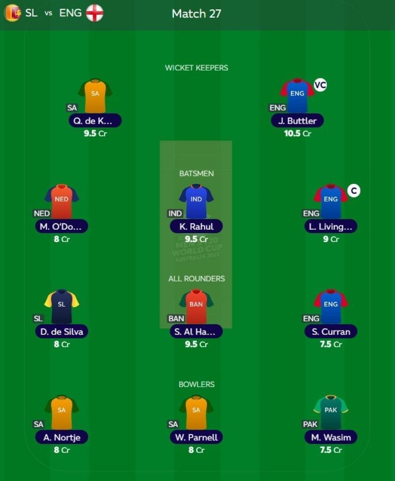 T20 World Cup Fantasy 2022 - Best Fantasy XI for Super 12: Match 27 - SL vs ENG: Thoughts and Captaincy Tips