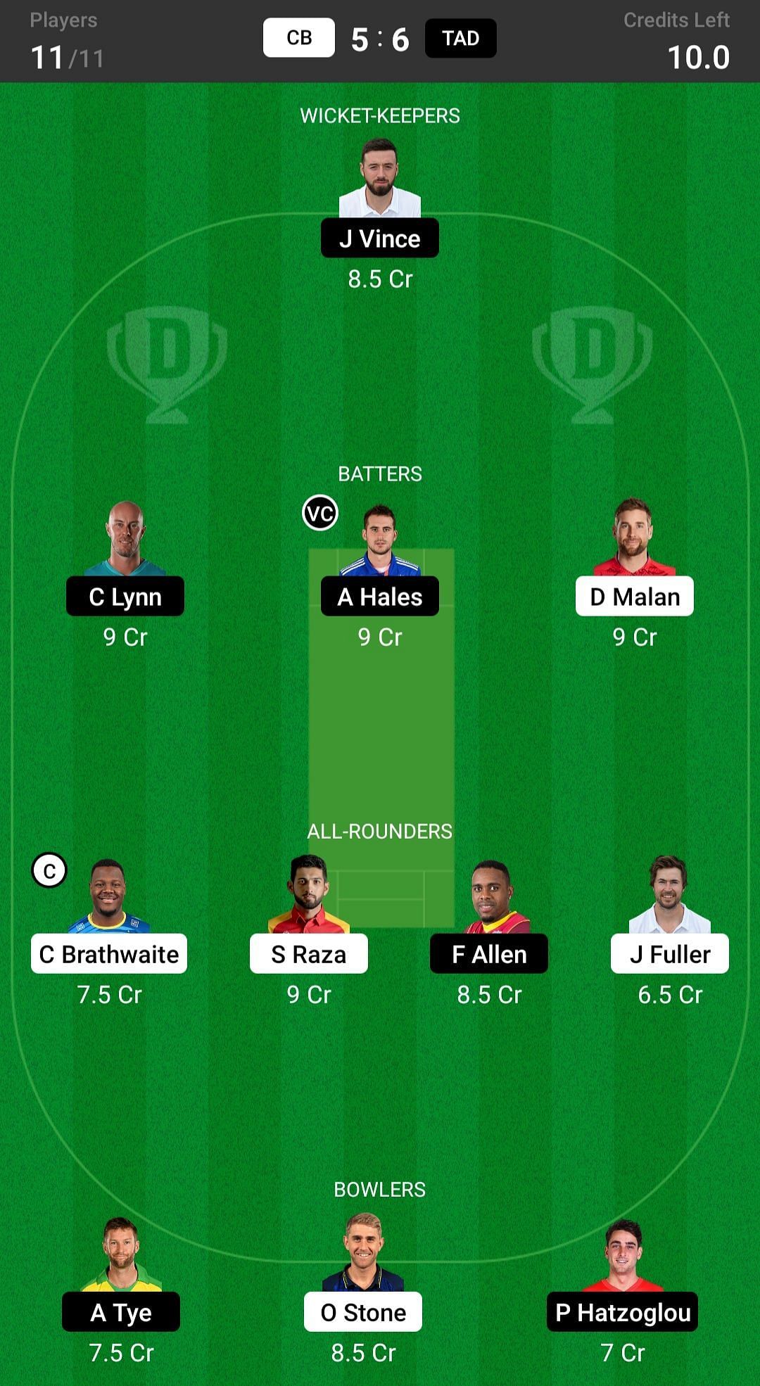 TAD vs CB match captain and vice-captain choices