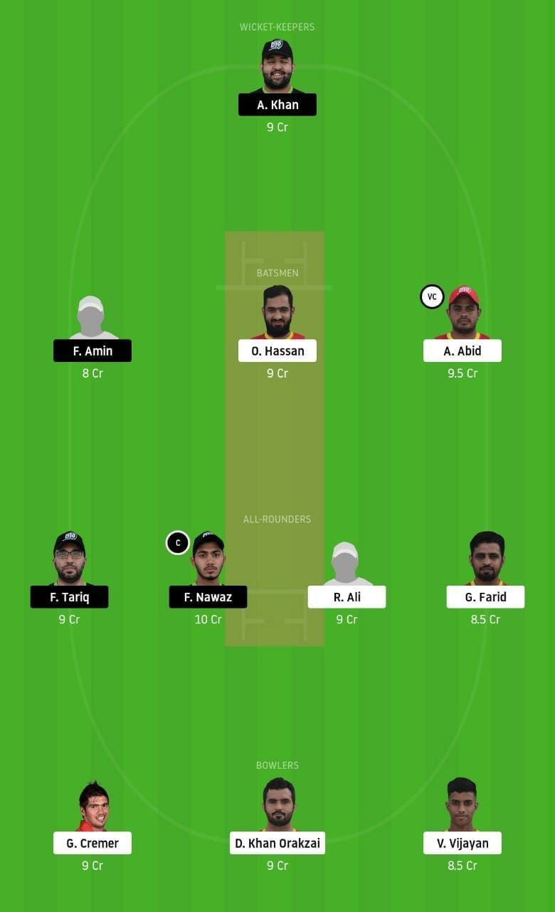 Fantasy Suggestion #1: A Khan, F Amin, O Hassan, A Abid, F Tariq, F Nawaz, R Ali, G Farid, G Cremer, D Khan and V Vijayan