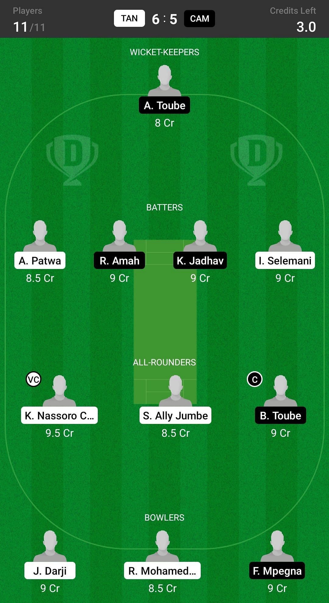 Tanzania vs Cameron Dream11 Prediction, Grand League