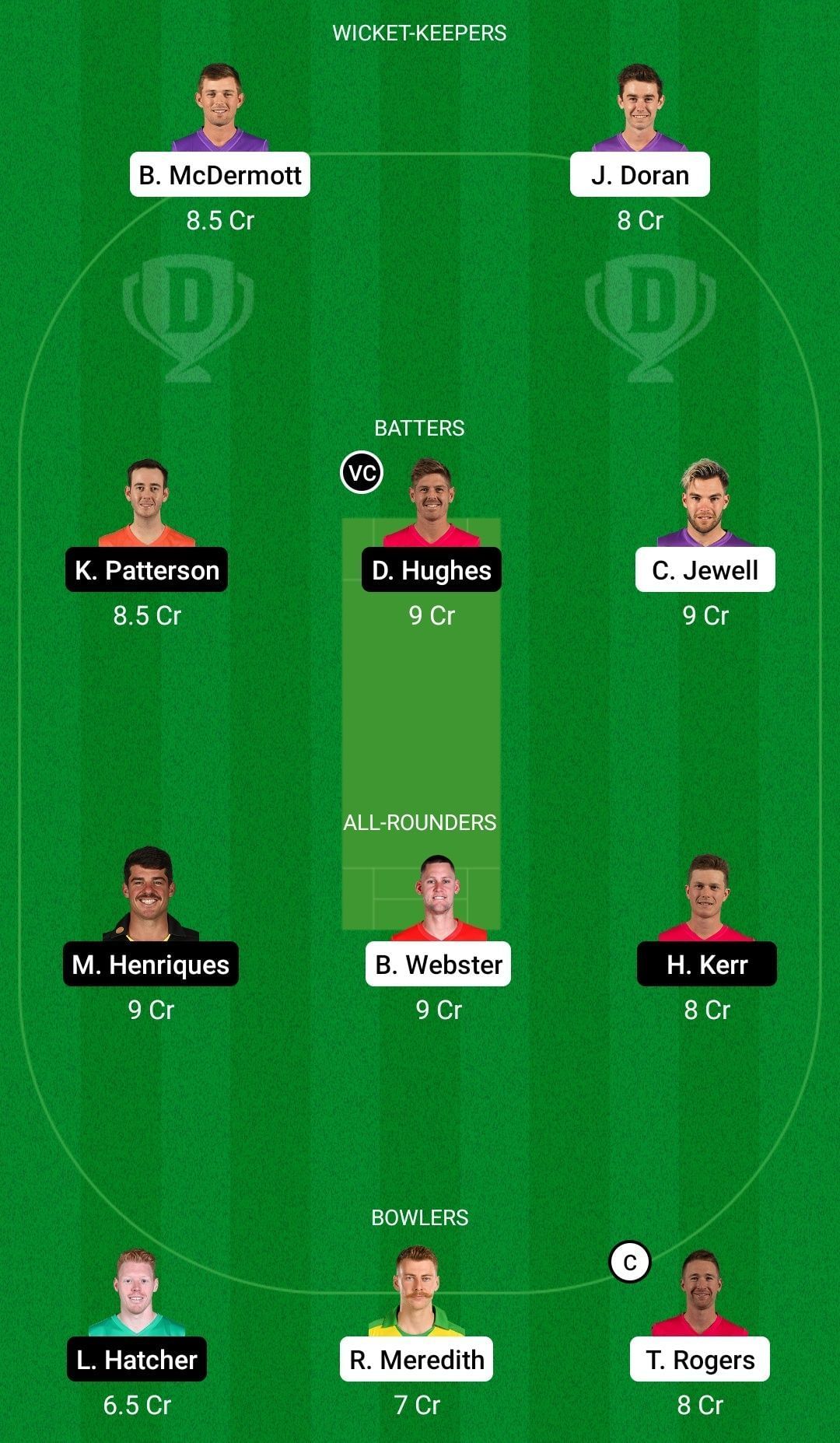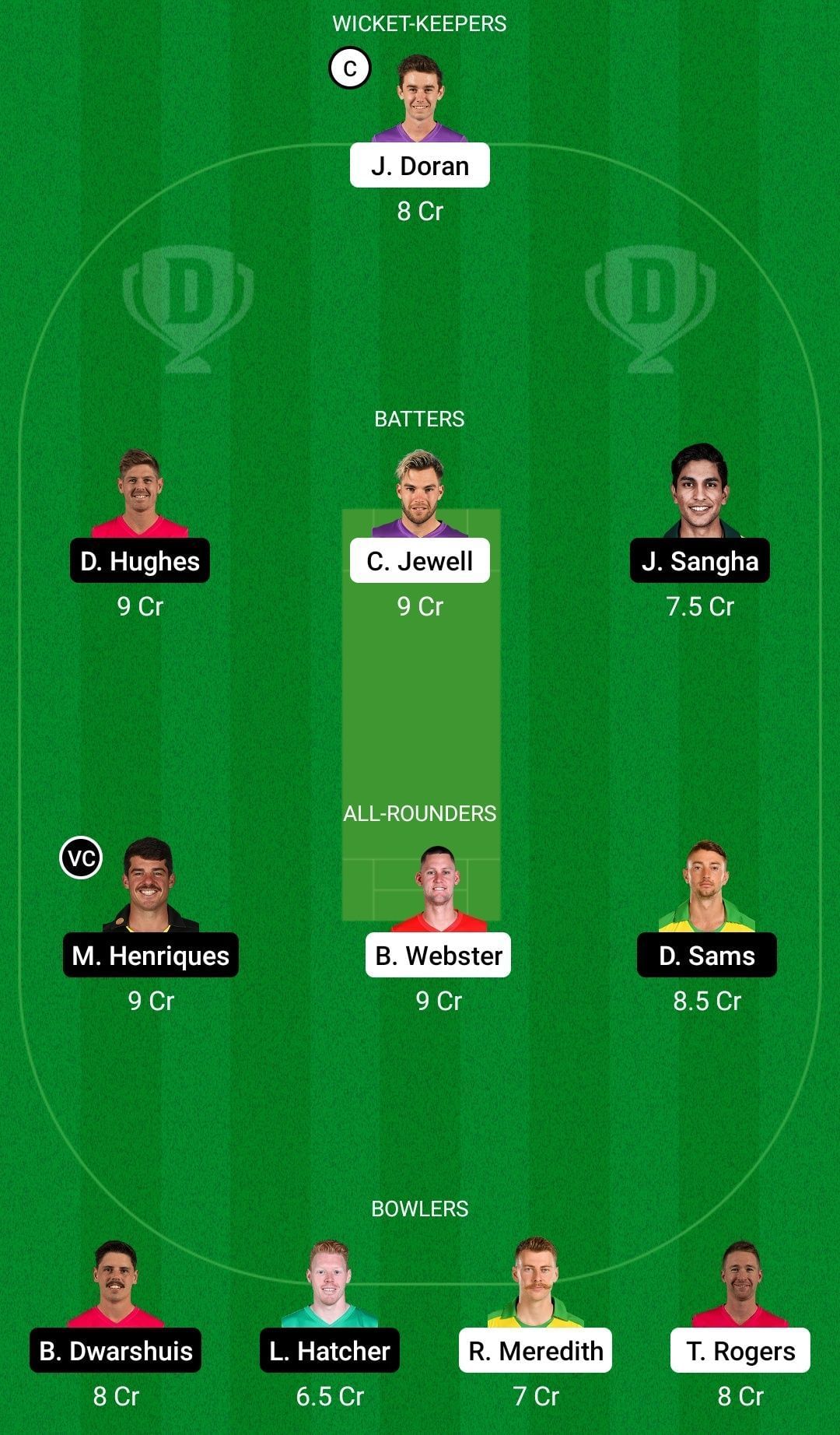 Bowlers: Liam Hatcher, Riley Meredith, Tom Rogers (c)