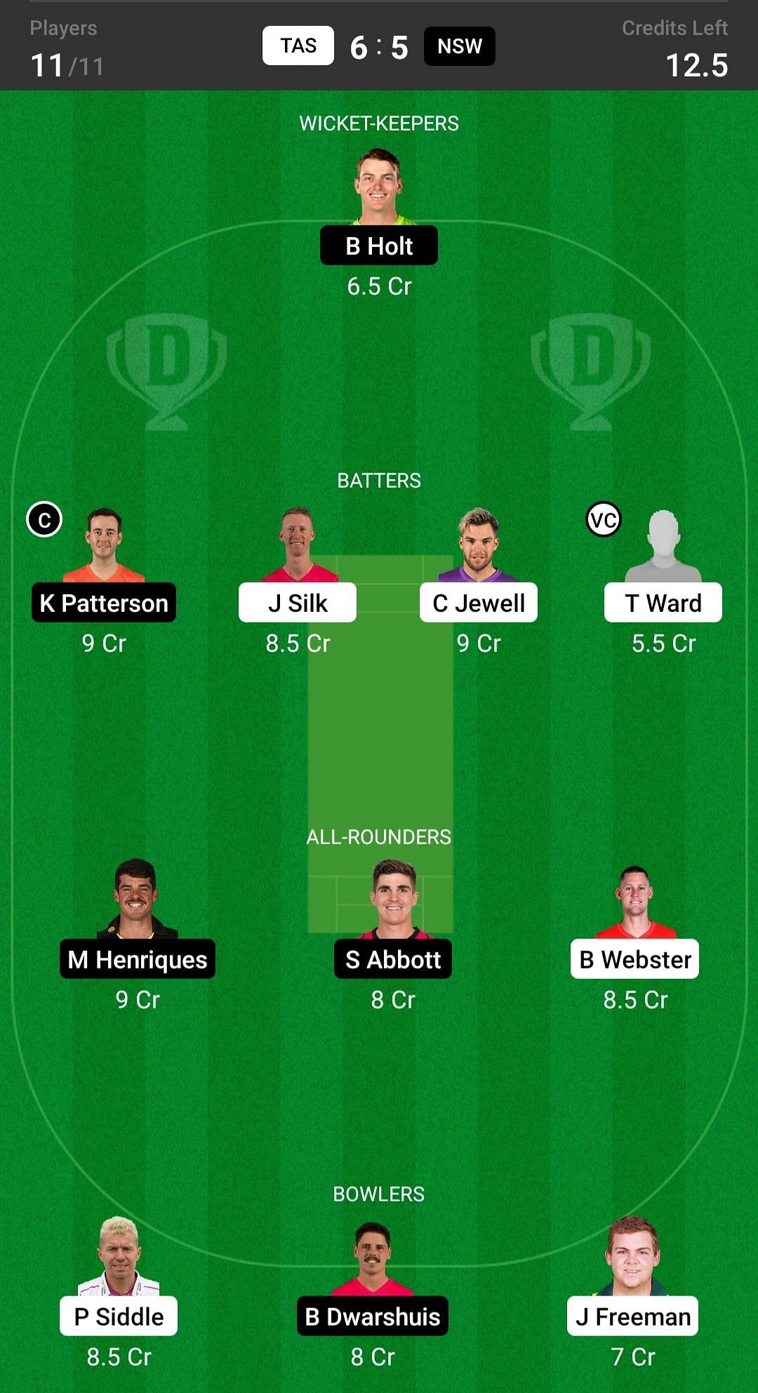 Tasmania vs New South Wales Dream11 Prediction, Grand League