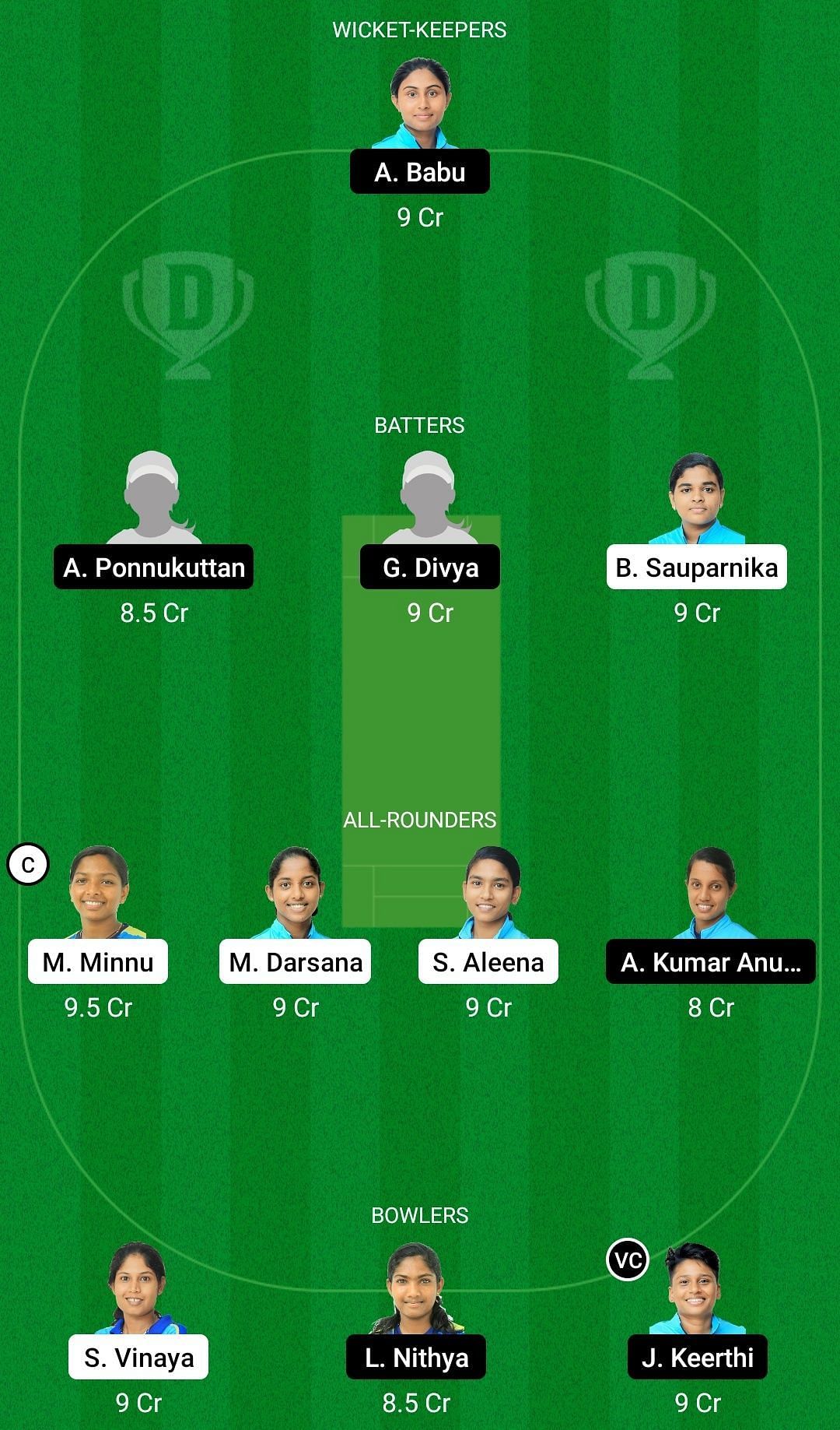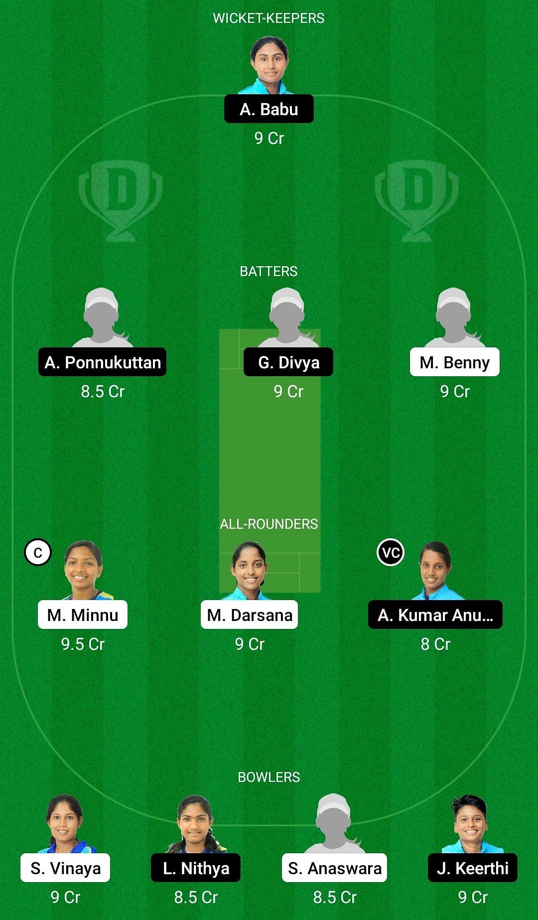 Captain: Mani Minnu. Vice-captain: Keerthi James.