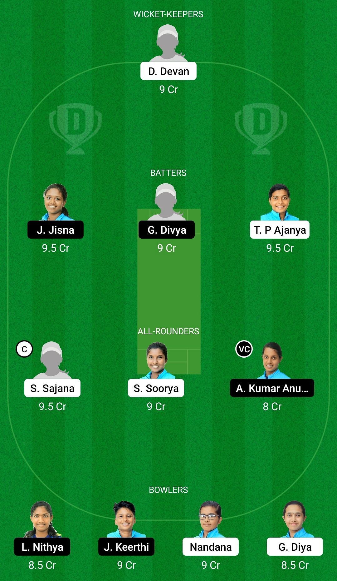 Team Sapphire: Drishya Devan (wk), M P Vaishna, Ajanya T P, Ansu Sunil, Ananya Pradeep, Sajeevan Sajana, Sooya Sukumar, Potti Manasvi, Nandana, Diya Gireesh, Sraya Roy