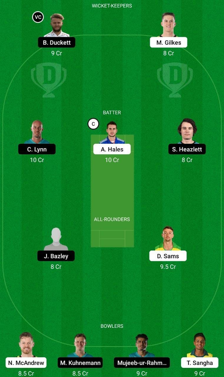 Fantasy Suggestion #2: Ben Duckett, Matt Gilkes, Chris Lynn, Alex Hales, Sam Heazlett, James Bazley, Daniel Sams, Nathan McAndrew, Matt Kuhnemann, Mujeeb ur Rehman and Tanveer Sangha
