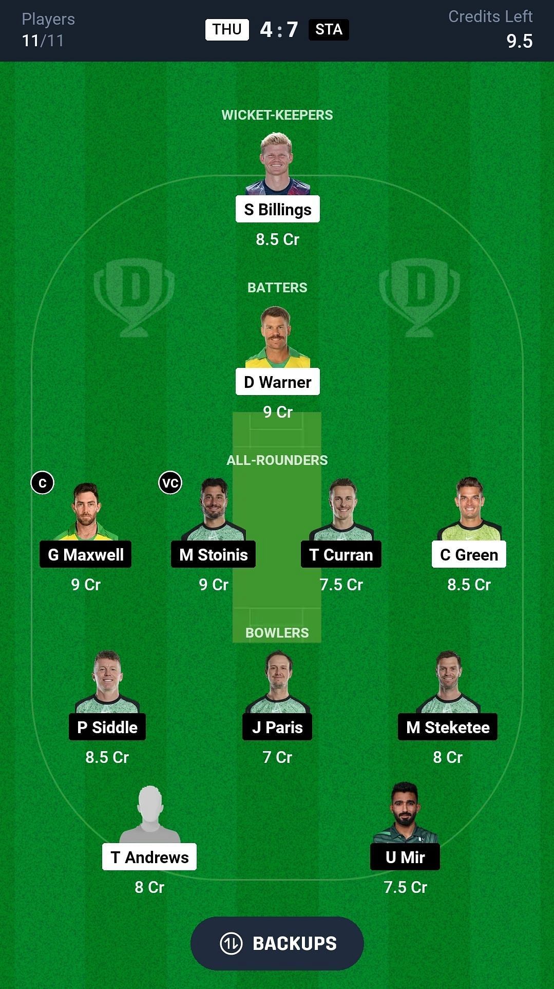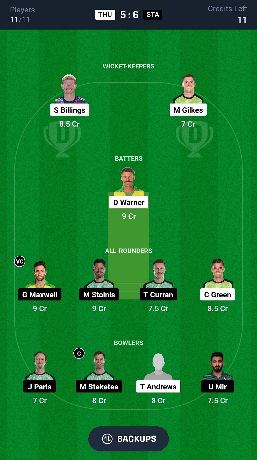 THU vs STA match captain and vice-captain choices