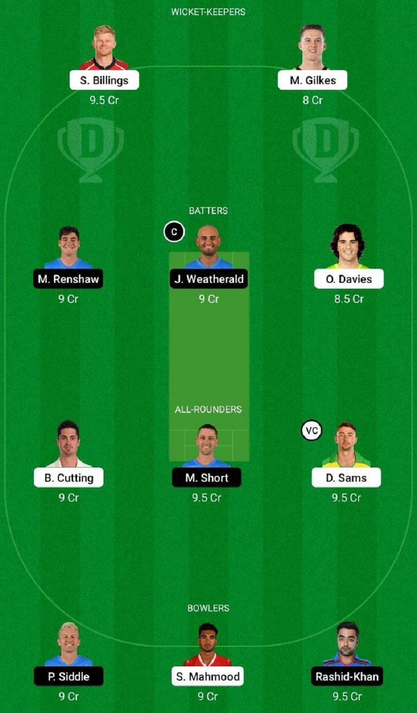 Fantasy Suggestion #1: Sam Billings, Matt Gilkes, Matt Renshaw, Jake Weatherald, Ollie Davies, Ben Cutting, Matt Short, Daniel Sams, Peter Siddle, Saqib Mahmood and Rashid Khan.