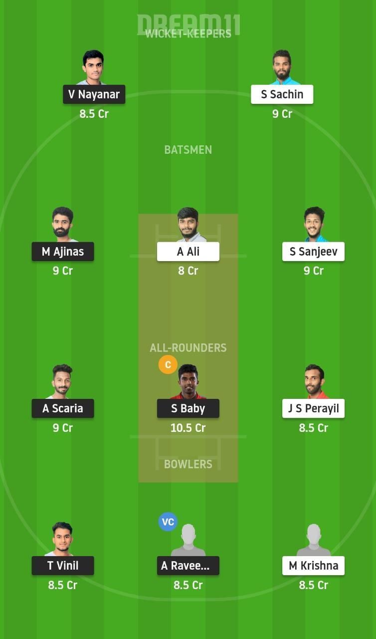 Captain: Akhil Scaria, Vice-captain: Sanju Sanjeev