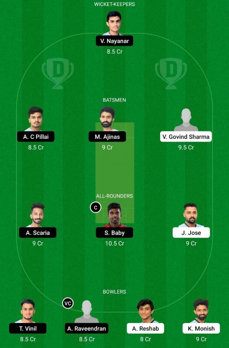Captain: Vishnu Vinod Vice-captain: Akhil Scaria