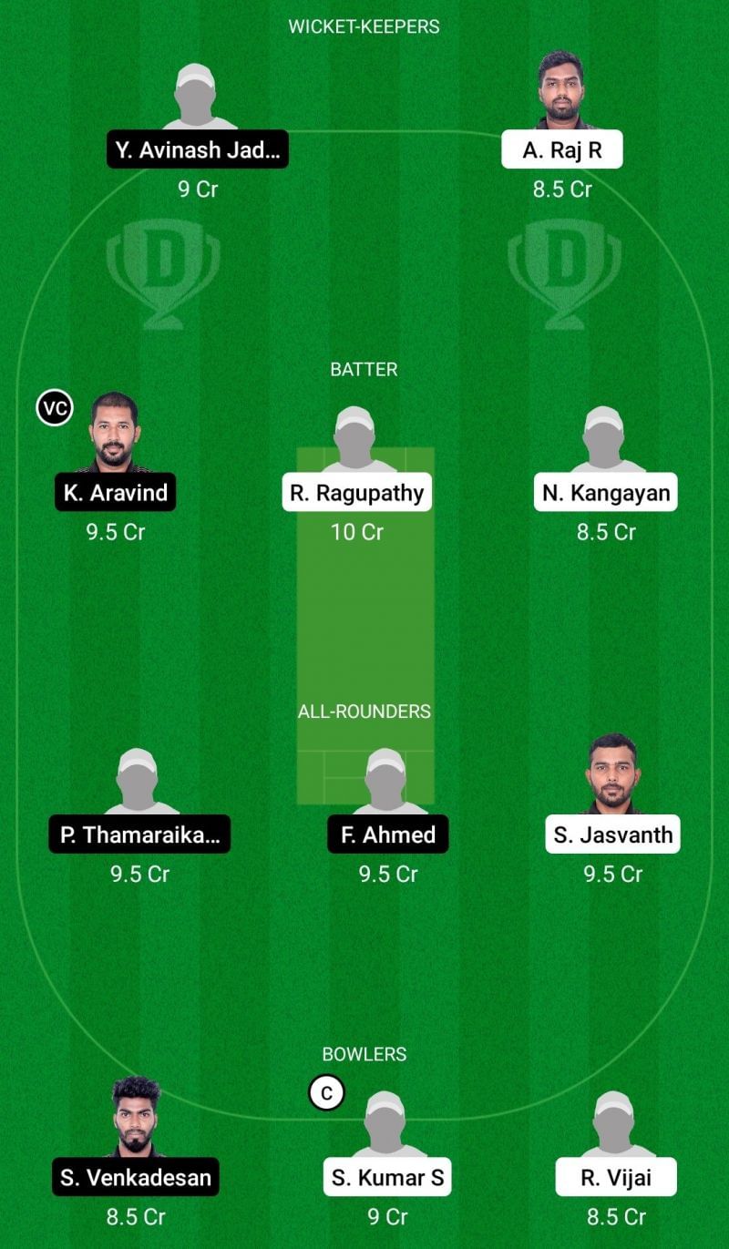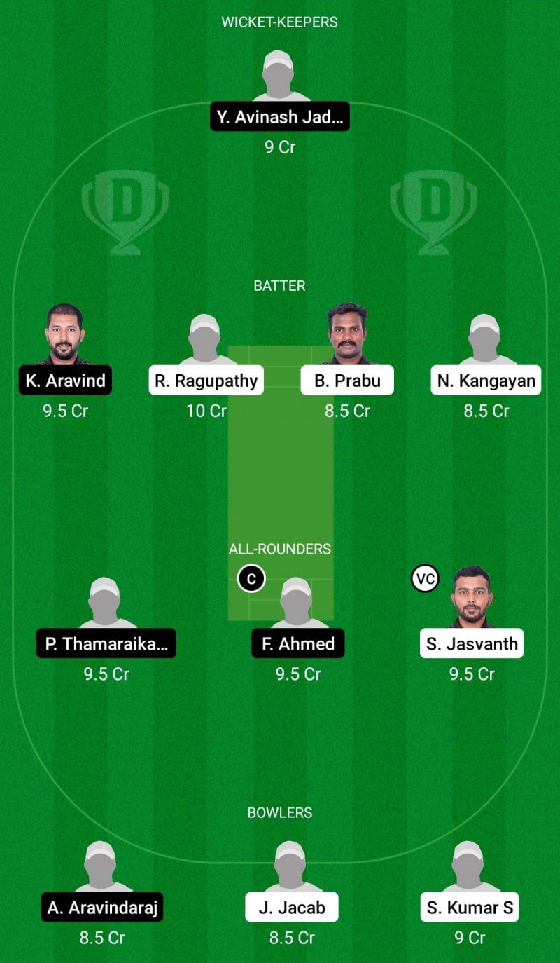Fantasy Suggestion #1: Yash Avinash Jadhav, K Aravind, R Ragupathy, B Prabu, Neyan Kangayan, P Thamaraikannan, Fabid Ahmed, S Jasvanth, Aravindaraj A, Jullian Jacab, Siva Kumar