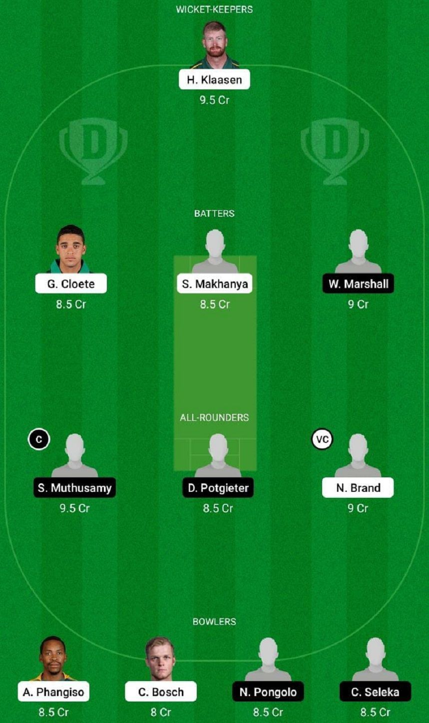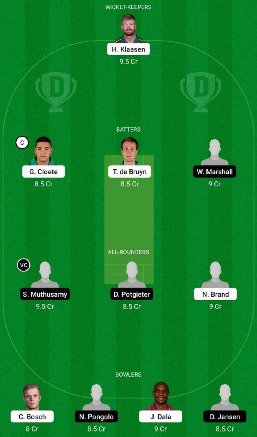 Fantasy Suggestion #1: H Klaasen, G Cloete, T de Bruyn, W Marshall, S Muthusamy, D Potgieter, N Brand, C Bosch, N Pongolo, J Dala and D Jansen.