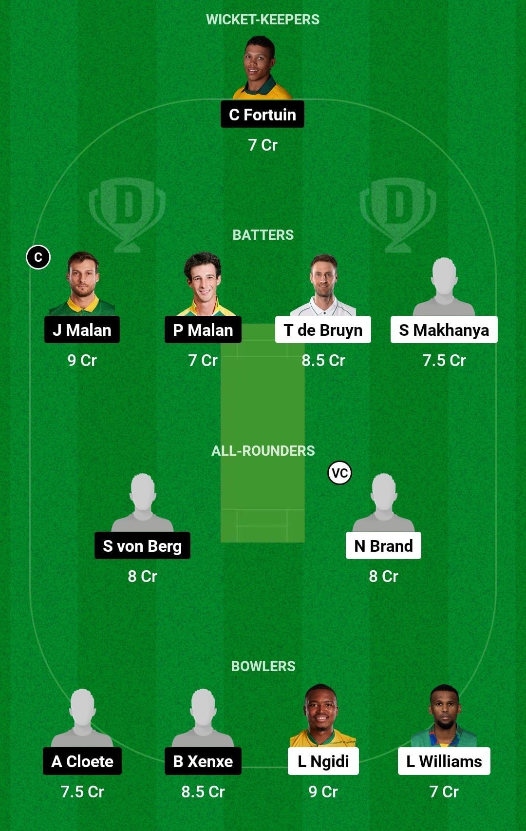 Rocks Probable Playing XI: Pieter Malan (c), Isma-eel Gafieldien, Ruan Terblanche, Janneman Malan, Michael Copeland, Clyde Fortuin (wk), Hardus Viljoen, Bamanye Xenxe, Khwezi Gumede, Achille Cloete, Shaun von Berg.
