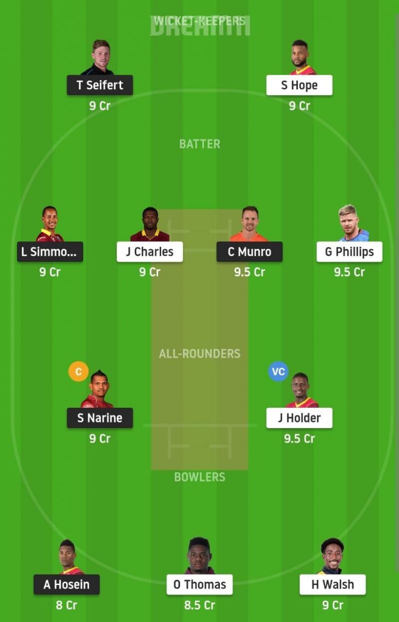 Fantasy Suggestion #2: Shai Hope, Tim Seifert, Colin Munro, Lendl Simmons, Glenn Phillips, Sunil Narine, Jason Holder, Oshane Thomas, Akeal Hosein, Hayden Walsh, Mohammad Amir.