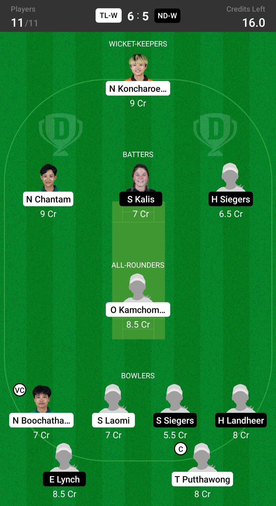 Bowlers: S Laomi, T Putthawong, E Lynch, N Boochatham, S Siegers, H Landheer