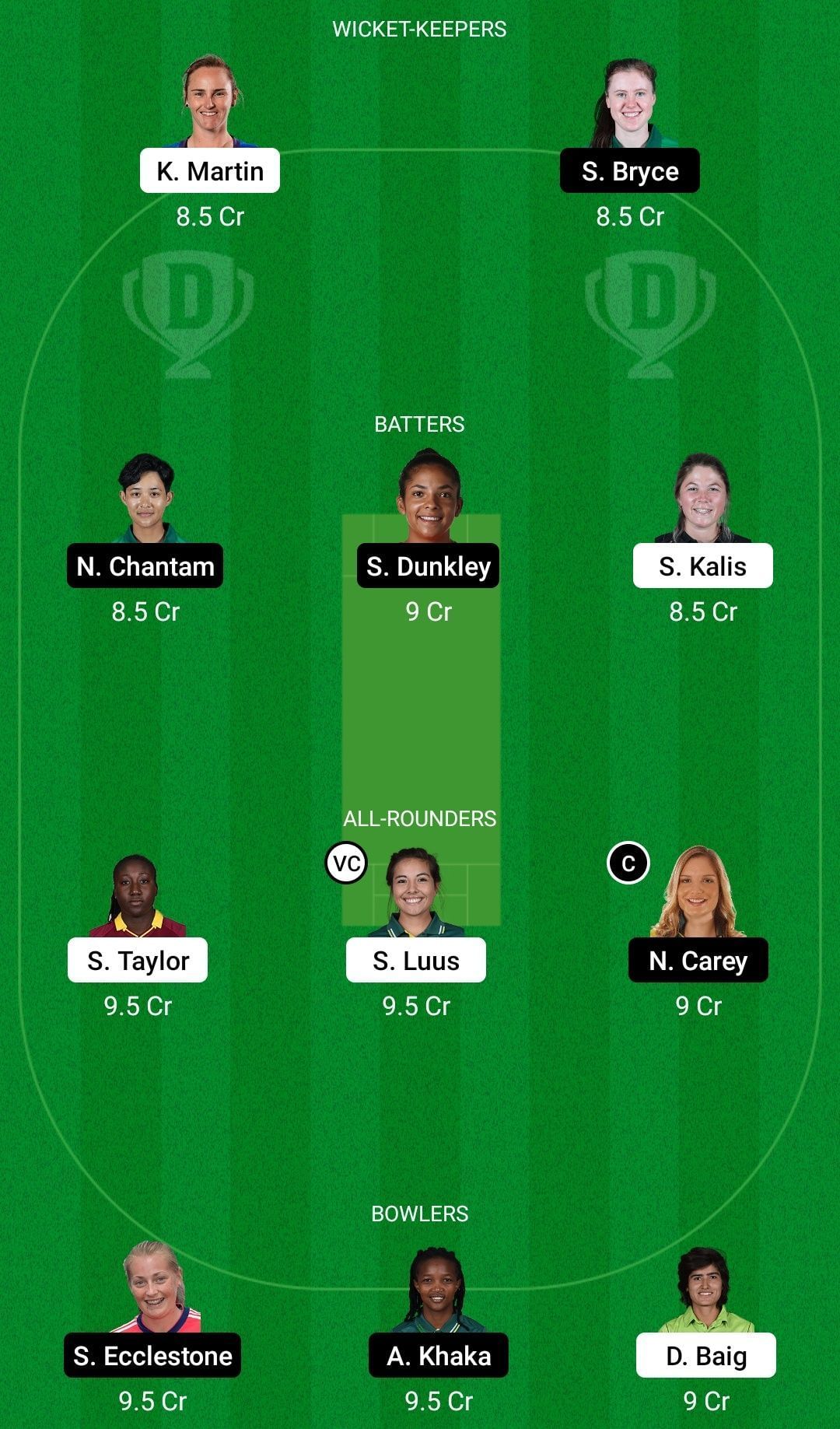 Fantasy Suggestion #2: Sarah Bryce, Natthakan Chantham, Sophia Dunkley, Sterre Kalis, Stafanie Taylor, Sune Luus, Nicola Carey, Winifred Duraisingam, Sophie Ecclestone, Ayabonga Khaka, Sita Rana Magar.
