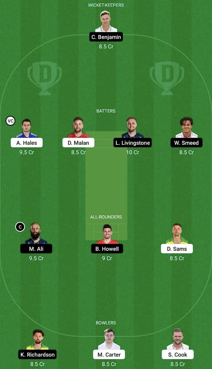 Fantasy Suggestion #2: Chris Benjamin, Alex Hales, Dawid Malan, Liam Livingstone, Will Smeed, Moeen Ali, Daniel Sams, Kane Richardson, Benny Howell, Matt Carter and Samuel Cook.