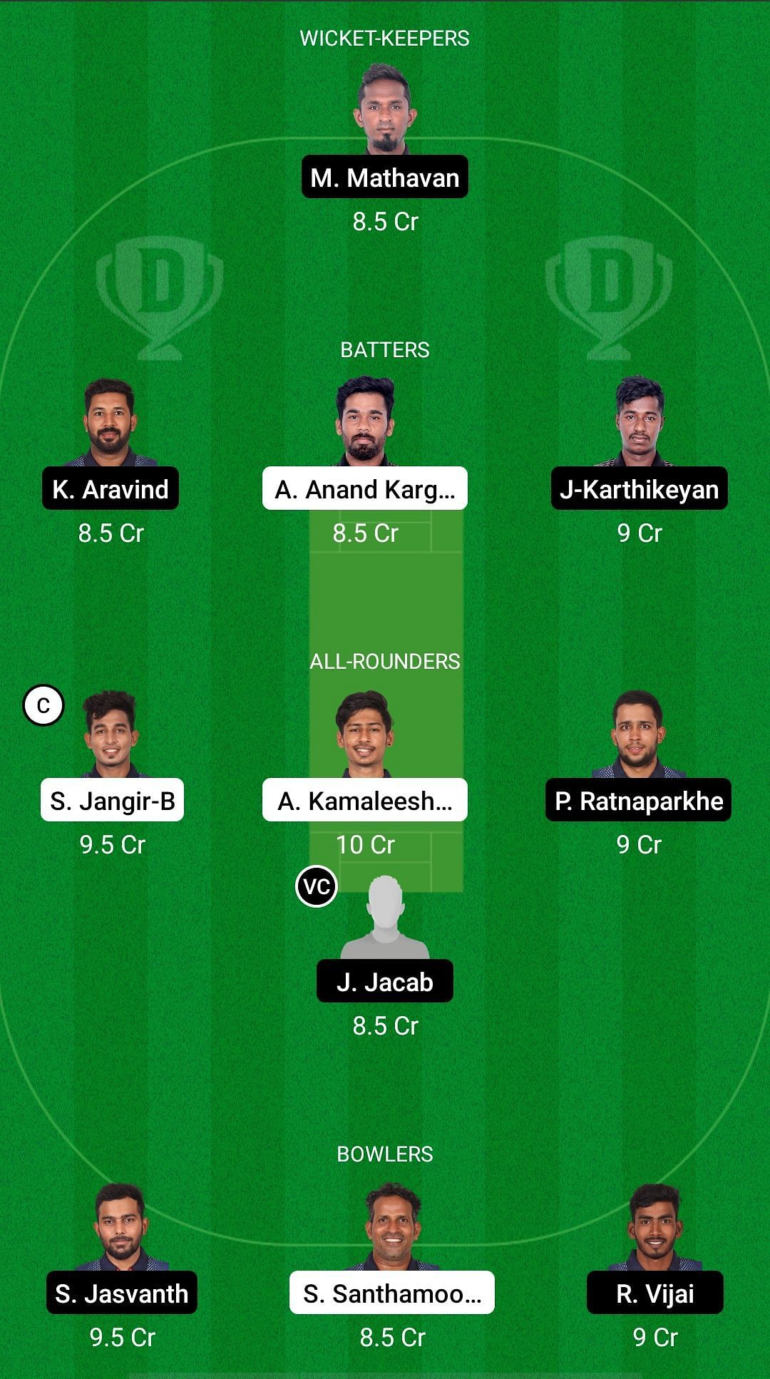 Fantasy Suggestion #2: Mathavan M, Akash Anand Kargave, Aravind Kothandapani, Karthikeyan Jayasundaram, Satish Jangir B, Kamaleeshwaran A, Paras Ratnaparkhe, Jullian Jacab, Jasvanth S, R Vijai, Santhamoorthy S.